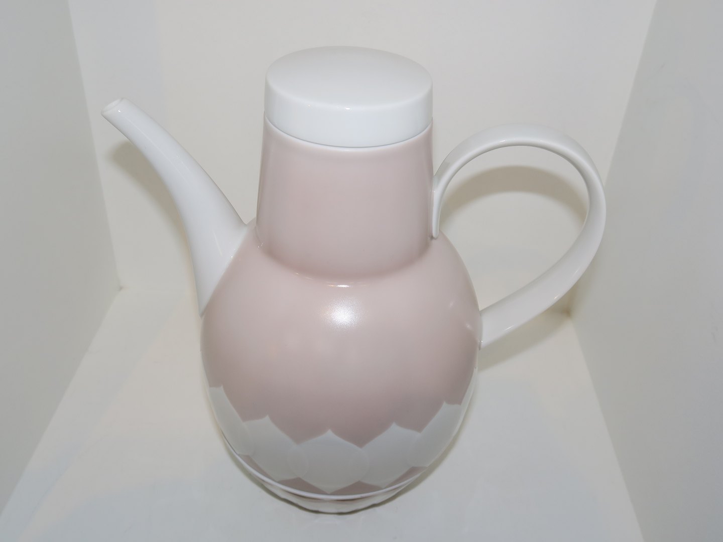 Bjorn Wiinblad Pink Lotus, coffee pot with chafing heater. Made at Rosenthal. Height 18.7 cm., with chafing heater height 23.0 cm. Perfect condition.