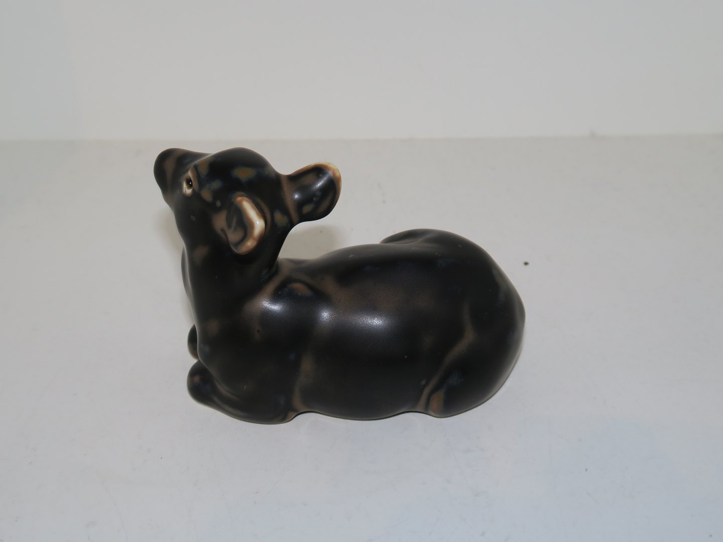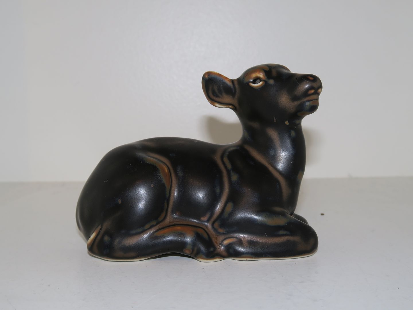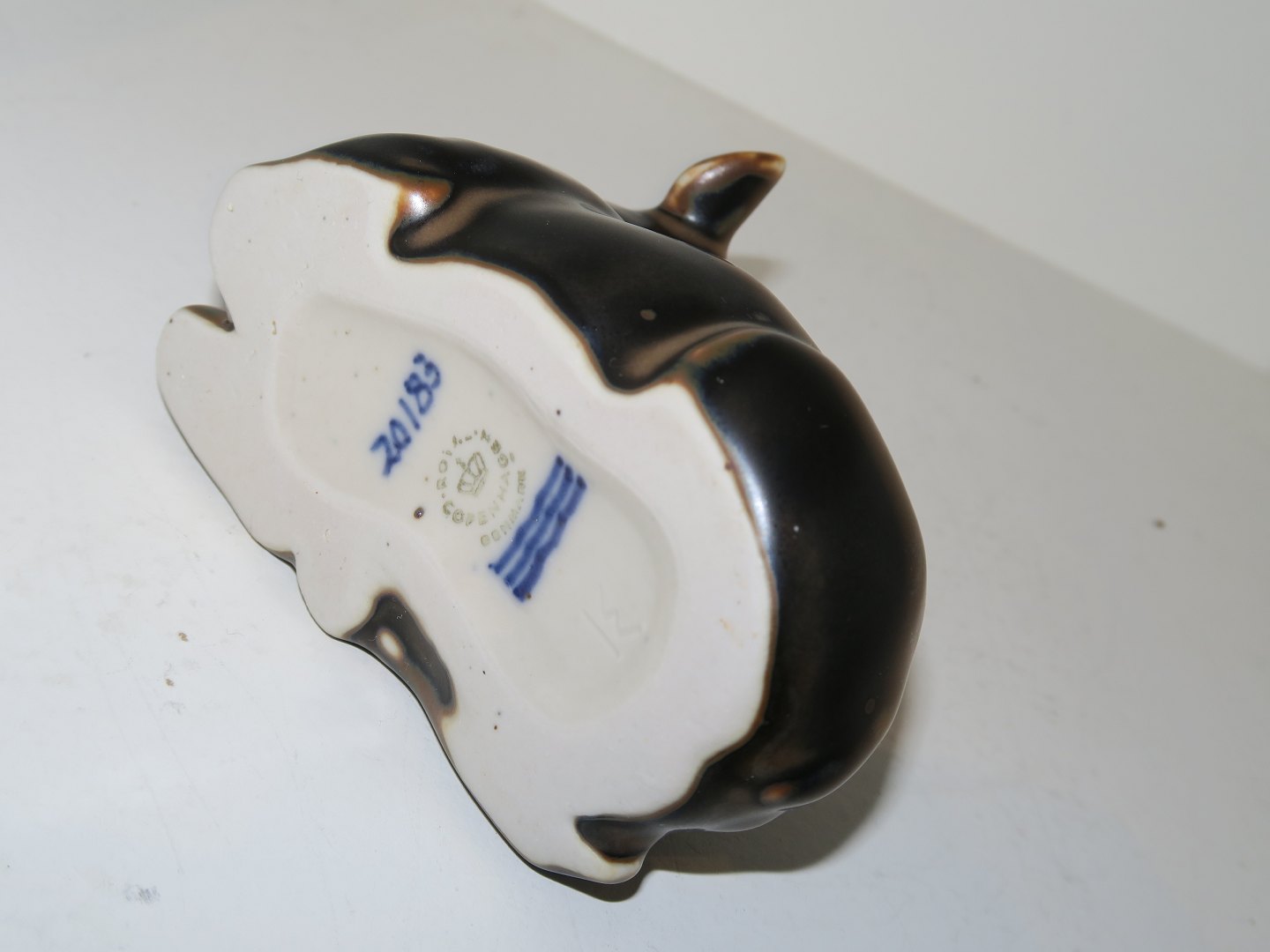 Royal Copenhagen brown stoneware figurine, deer. Designed by artist Knud Kyhn. Decoration number 20183. Factory first. Length 9.5 cm. Perfect condition with no chips, cracks or repairs.