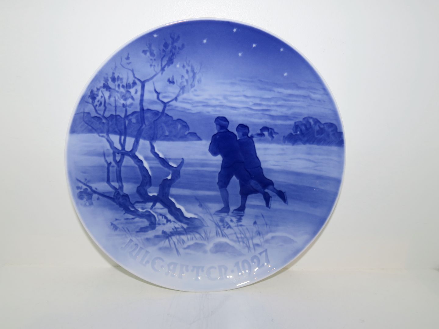 Bing & Grøndahl juleplatte fra 1927 - Skøjteløbere. 1. sortering. Diameter 18 cm. Perfekt stand uden fejl.
