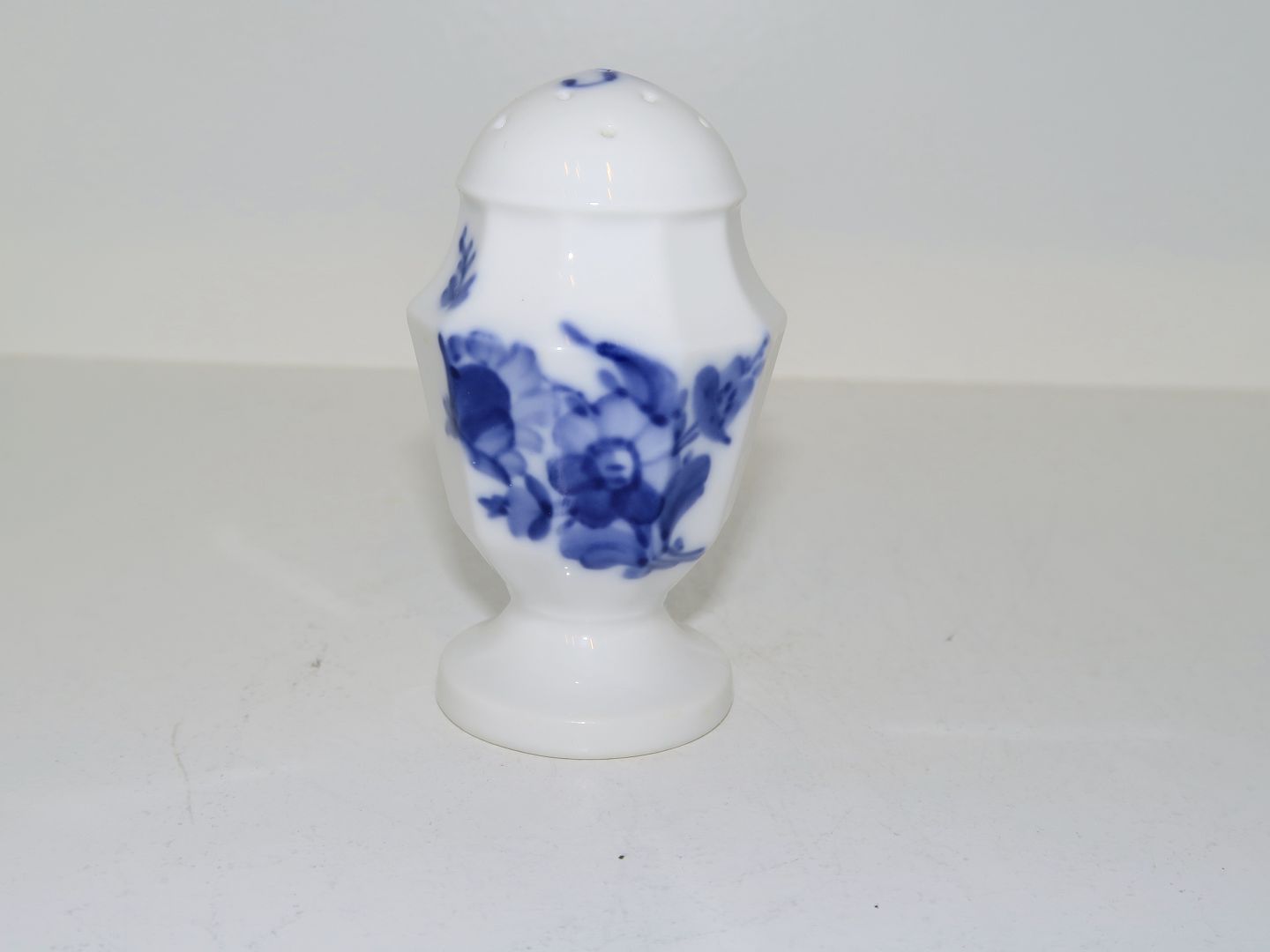 Royal Copenhagen Blå Blomst Kantet, peberbøsse med "P" i toppen. Dekorationsnummer 10/8584. 1. sortering. Høje 8,0 cm. Perfekt stand uden fejl.