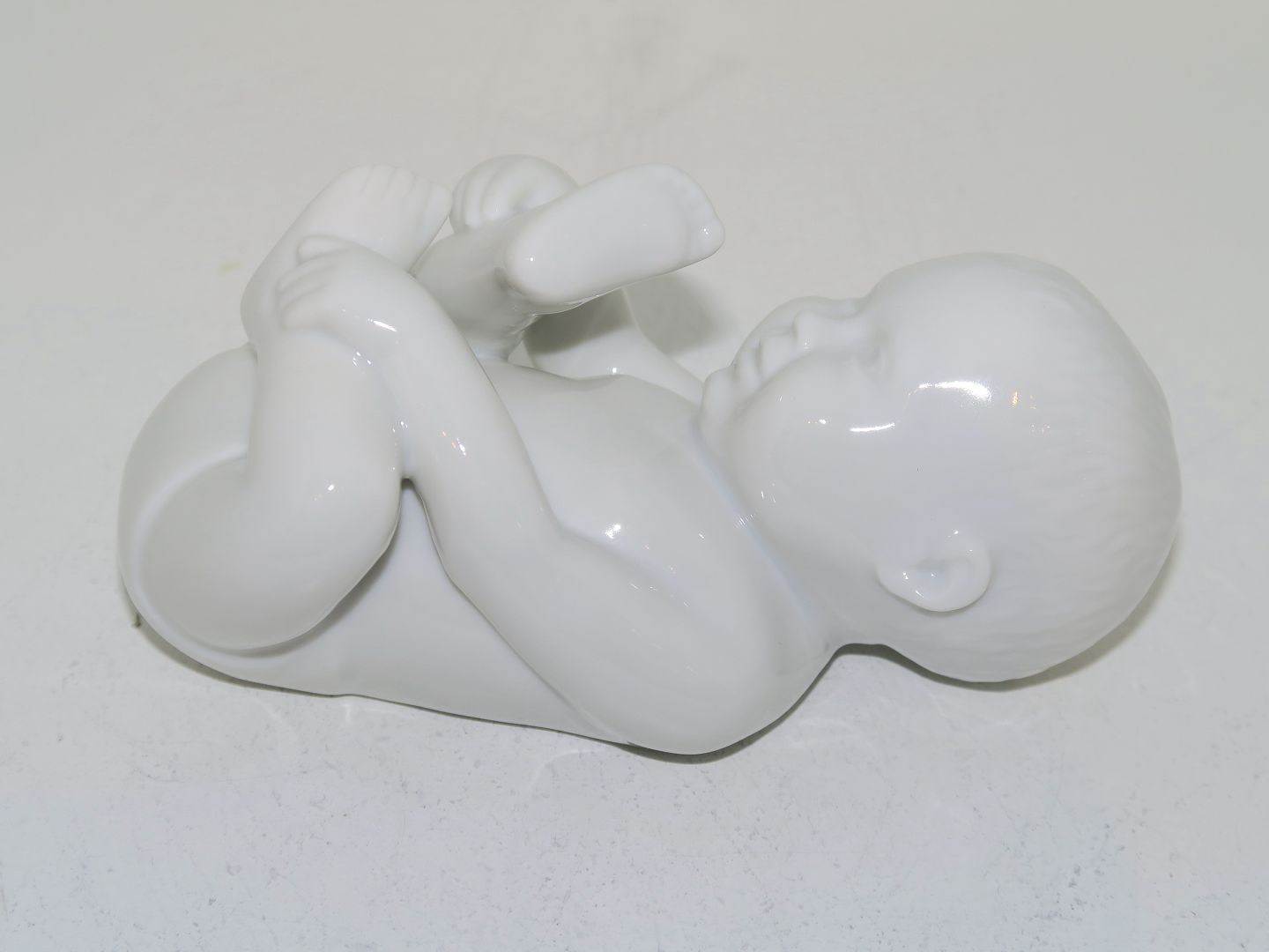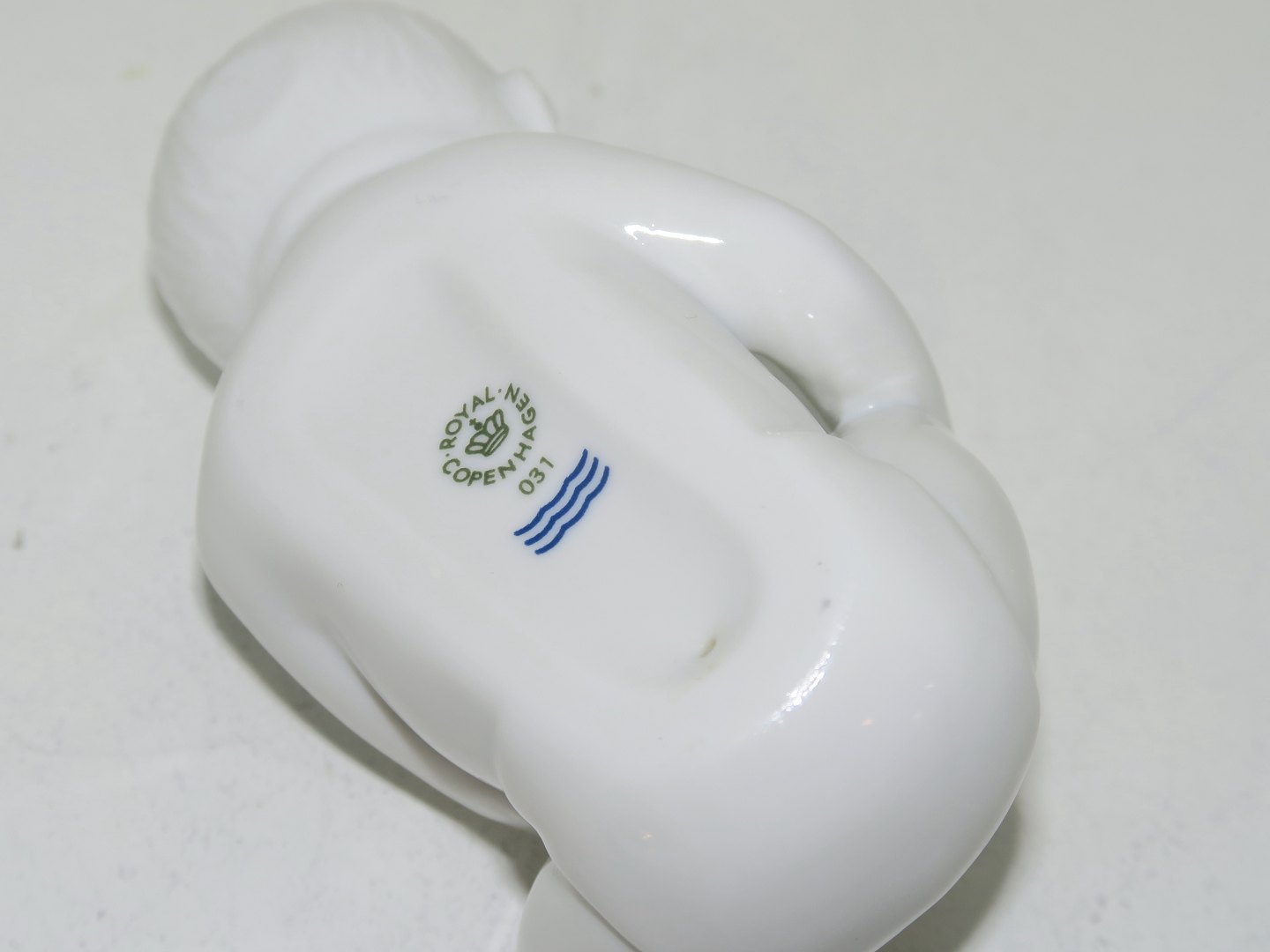 Small Royal Copenhagen figurine, blanc de chine baby boy. Decoration number 031. Factory first. Length 11.8 cm. Perfect condition with no chips, cracks or repairs.