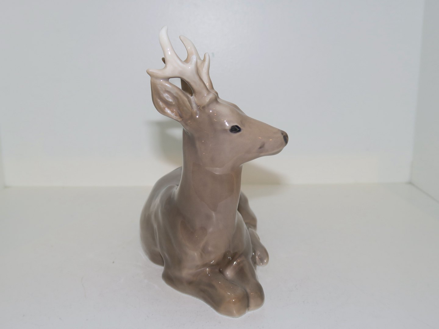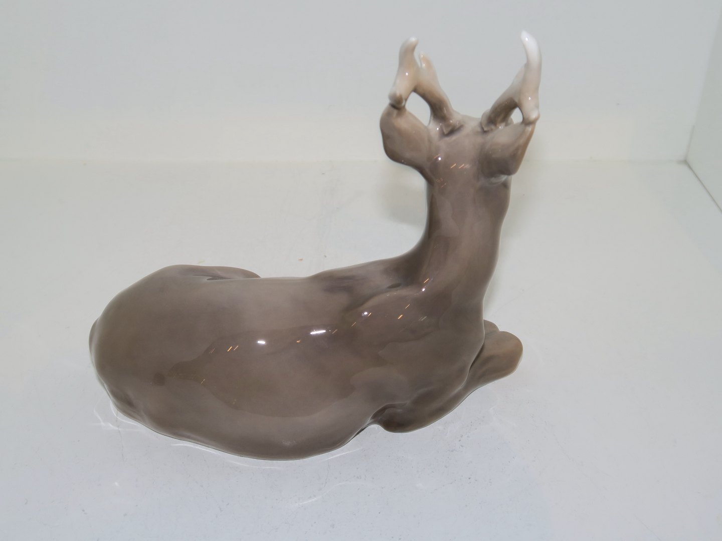 Royal Copenhagen Figur, hjort. Af fabriksmærket ses det, at denne er produceret i mellem 1969 og 1974. Dekorationsnummer 756. 2. sortering. Længde 15,8 cm. Perfekt stand uden fejl.