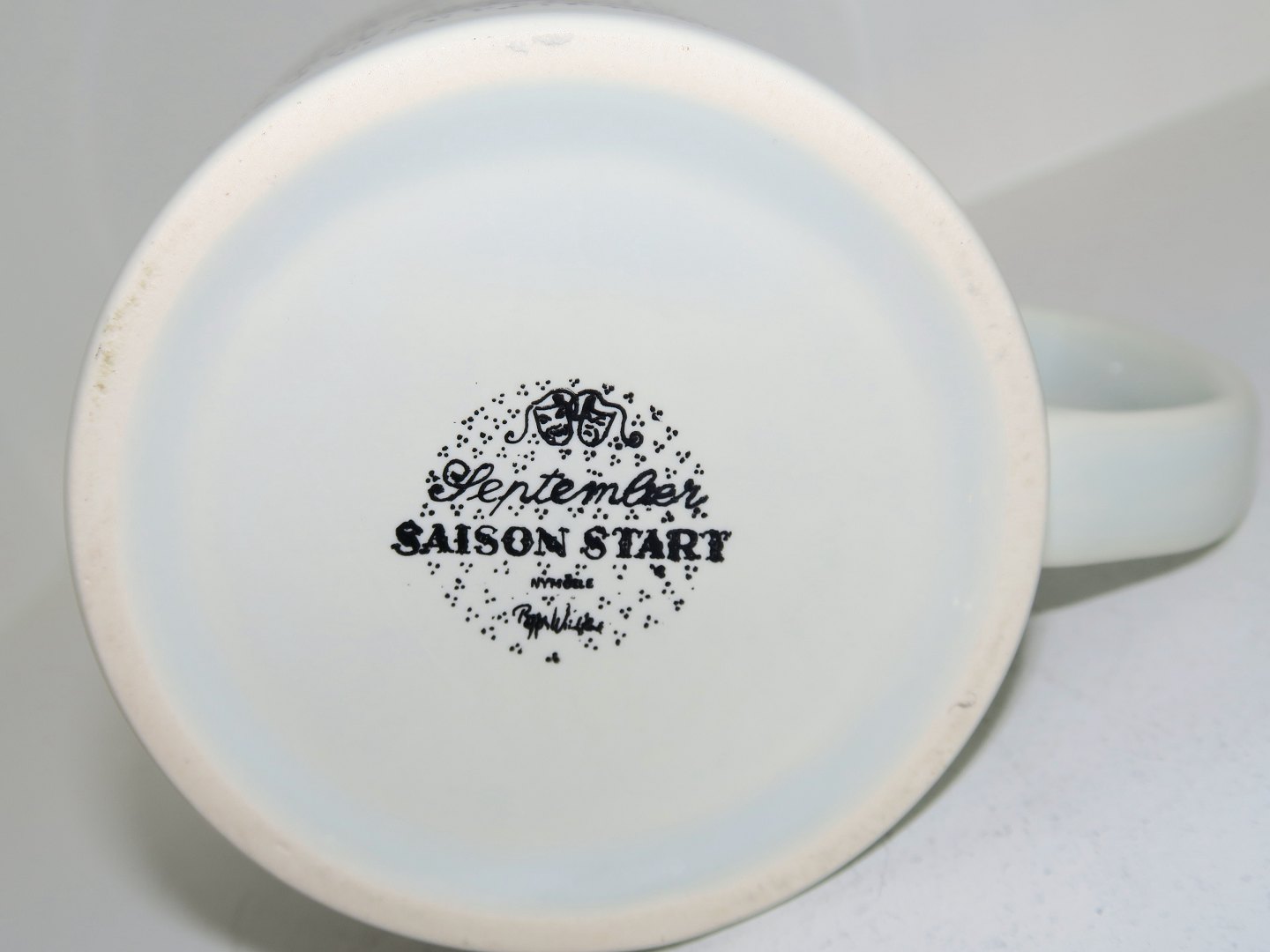 Bjorn Wiinblad art pottery, monthly mug, September - Saison Start. Produced at Nymolle pottery. Height 9.1 cm., diameter 8.0 cm. Perfect condition.