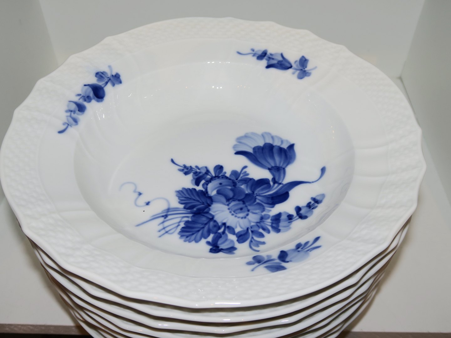 Royal Copenhagen Blå Blomst Svejfet, dybe tallerkner.