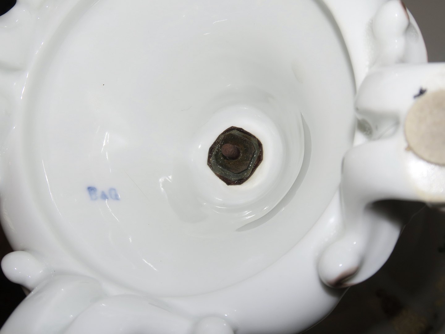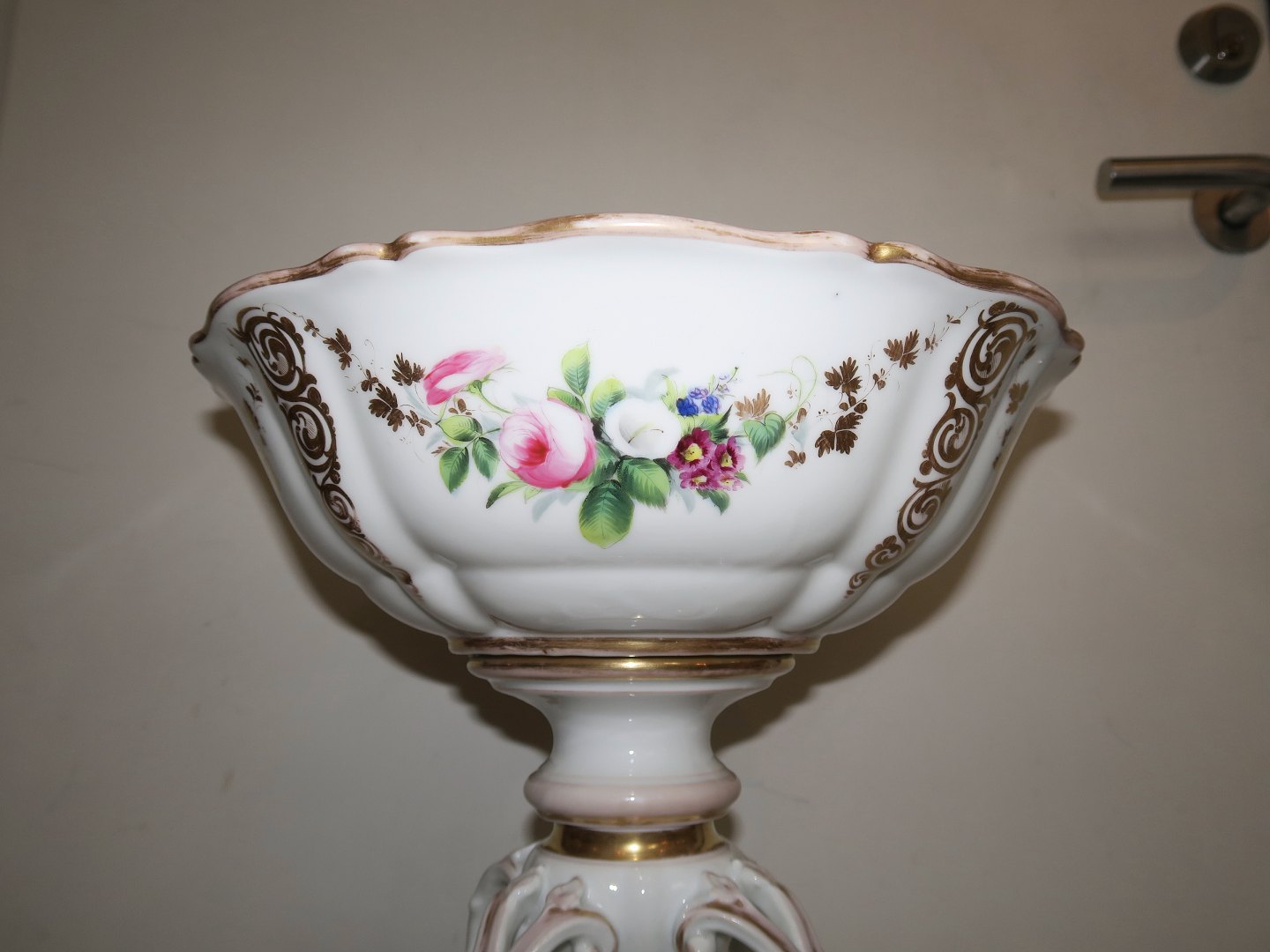 Bing & Grøndahl ekstra stor opsats i hvidt porcelæn dekoreret med blomster.