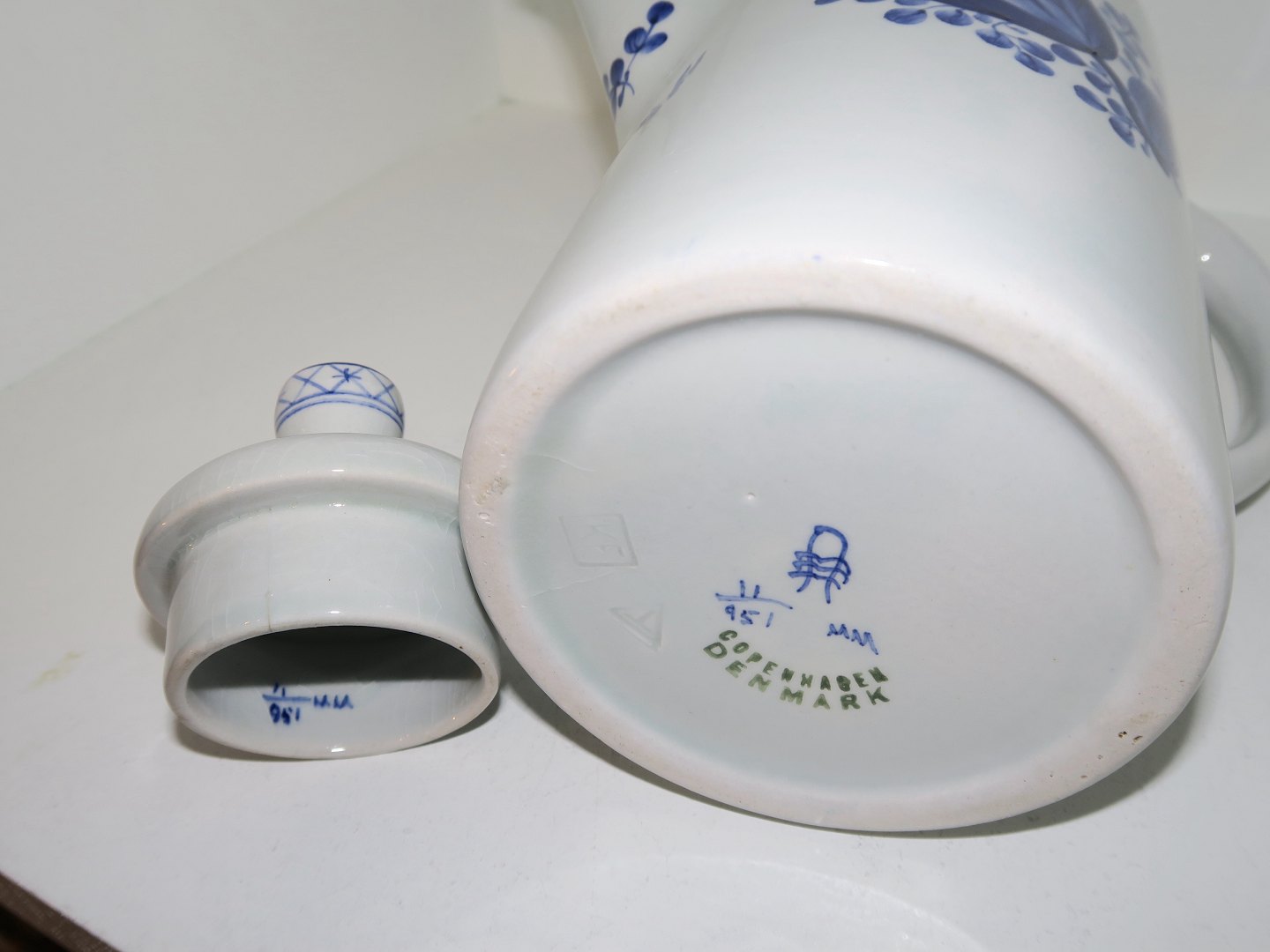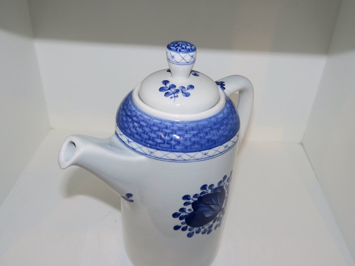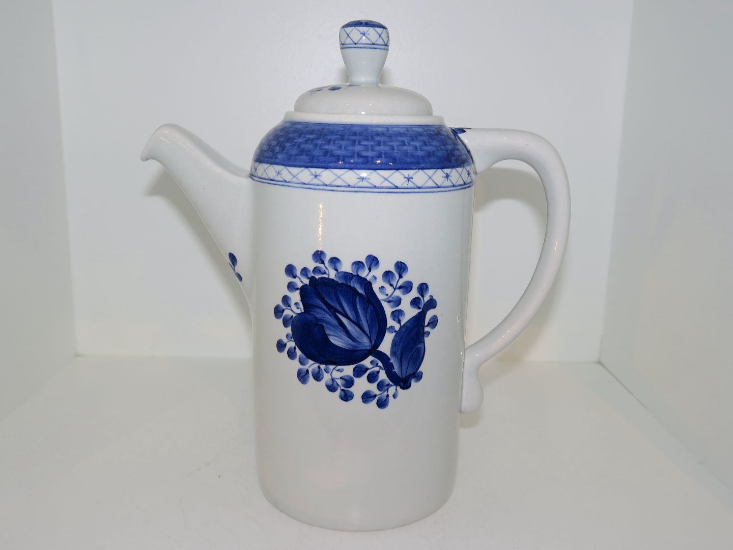 Aluminia Tranquebar, tidlig og sjælden kaffekande med låg. Dekorationsnummer 11/951. 1. sortering. Højde 21,0 cm. Der er en hårrevne på låget - se sidste foto - ellers perfekt stand uden fejl.