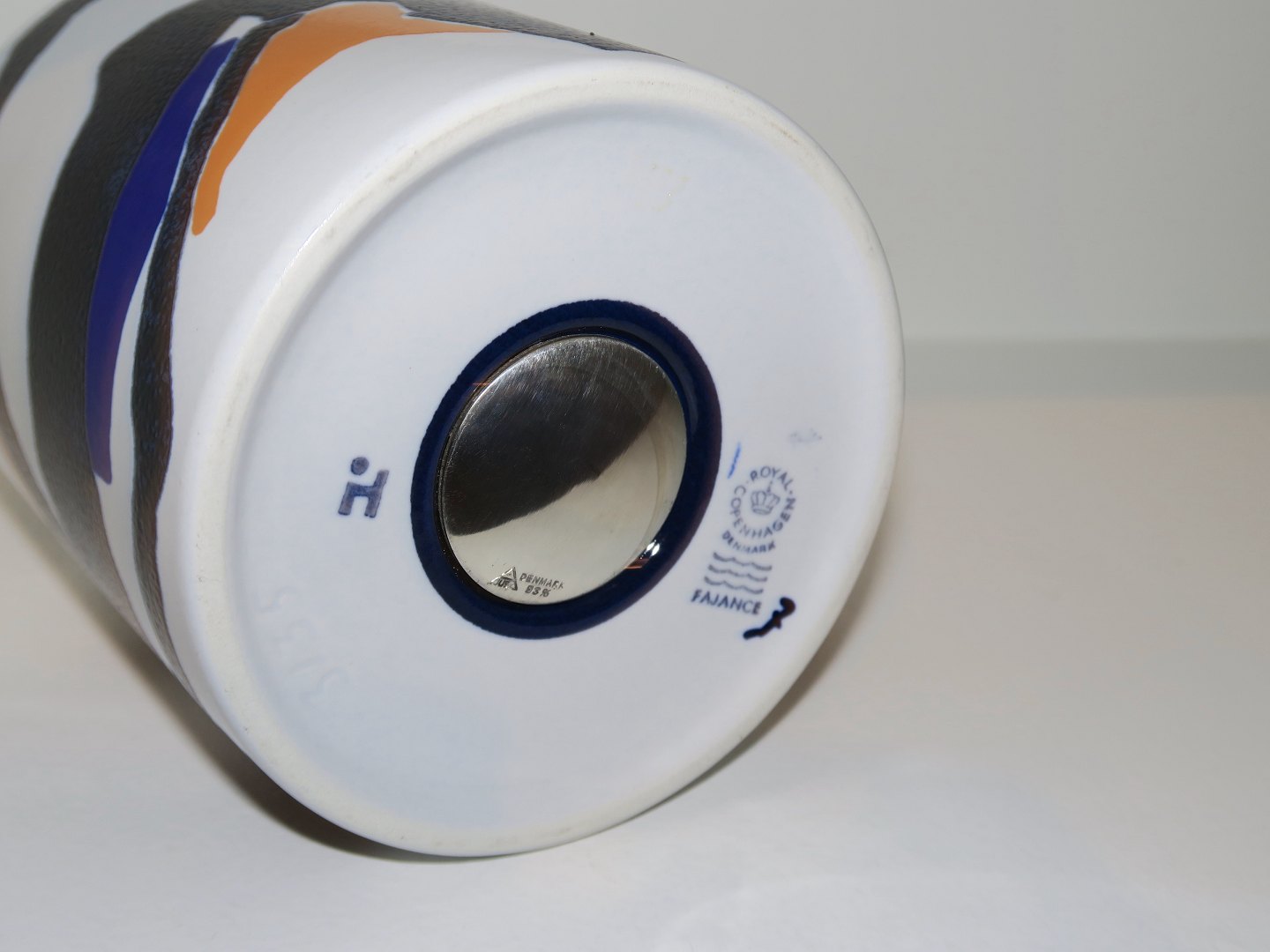 Royal Copenhagen, stort årskrus fra 1982. Designet af Inge-Lise Kofoed. 1. sortering. Højde 10,2 cm. Diameter 11,2 cm. Perfekt stand uden fejl.
