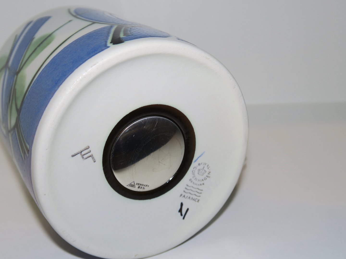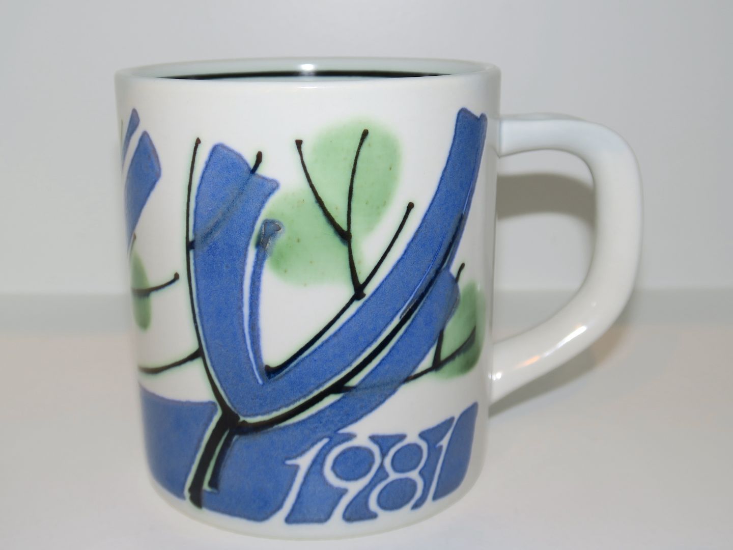Royal Copenhagen, stort årskrus fra 1981. Designet af Ellen Malmer. 1. sortering. Højde 10,2 cm. Diameter 11,2 cm. Denne er uden sølvplade ellers perfekt stand uden fejl.