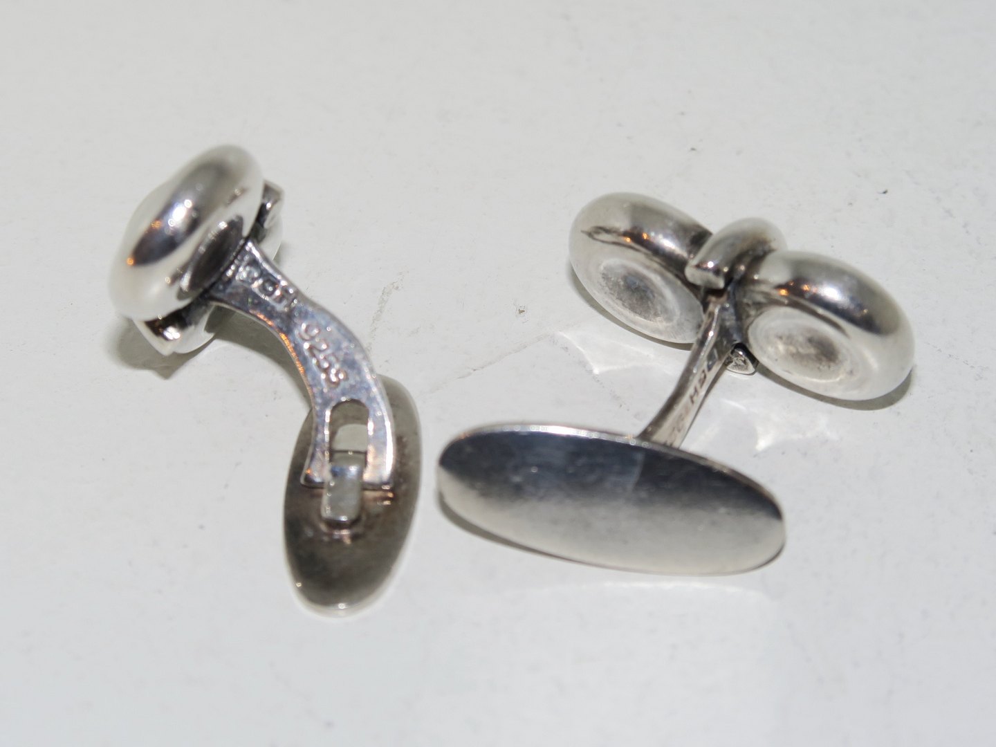 Danish sterlingsilver, pair of cufflinks. Hallmarked "DGH925S". Dansk Guldsmed Haandvaerk was a silsmith in Copenhagen from 1954 until 1973. The cufflink measures 2.1 by 1.6 cm. Perfect condition.