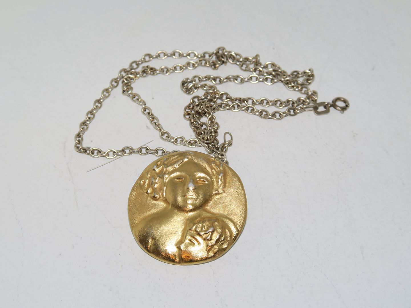 Guldvedhæng med to børn med sølvhalskæde fra 1960-1970