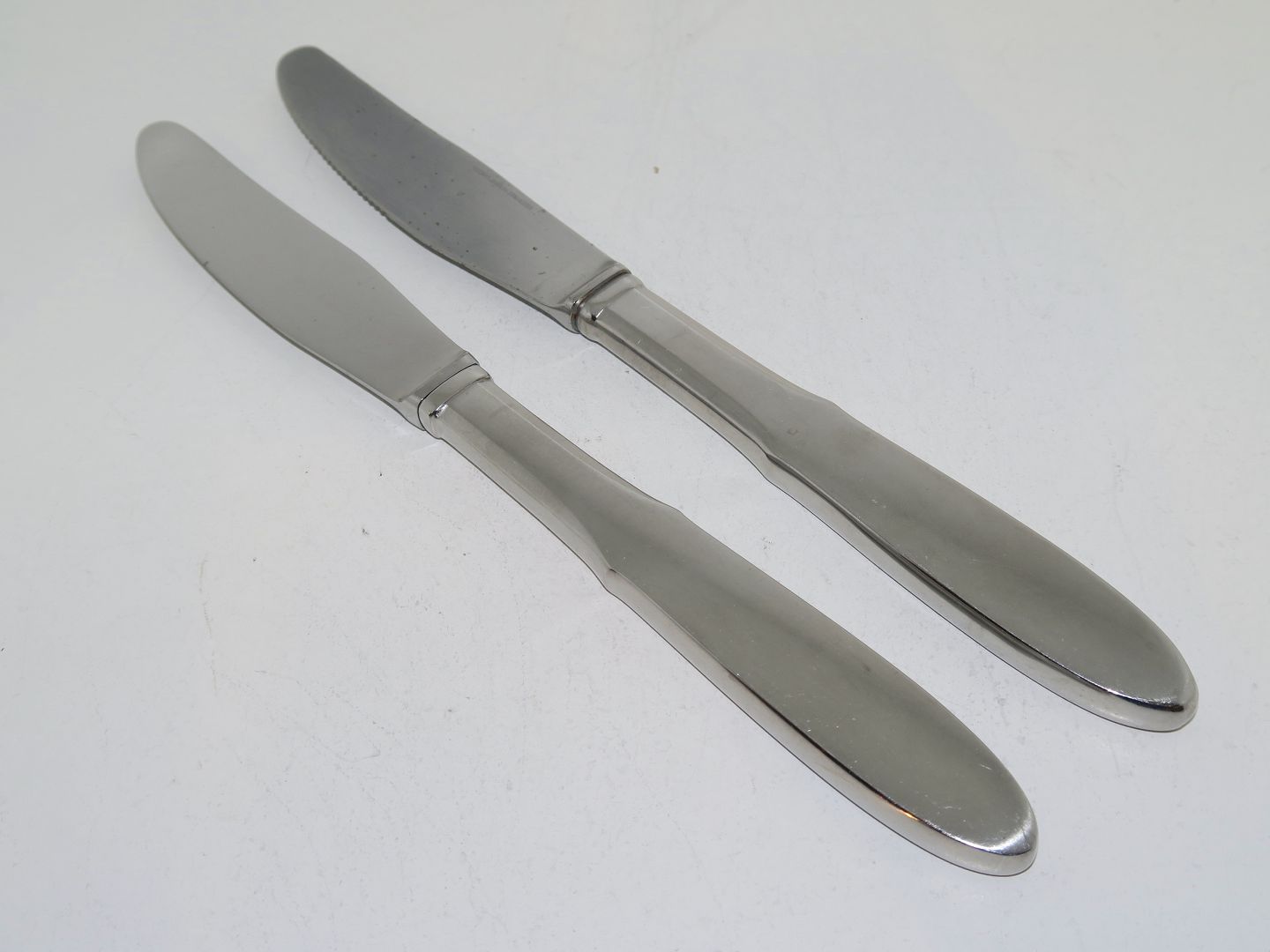 Georg Jensen Mitra stål bestik, middagskniv med kort knivblad. Længde 23,2 cm. heraf måler knivbladet 10,5 cm. Pæn stand. Internt varenummer: KNIV1.