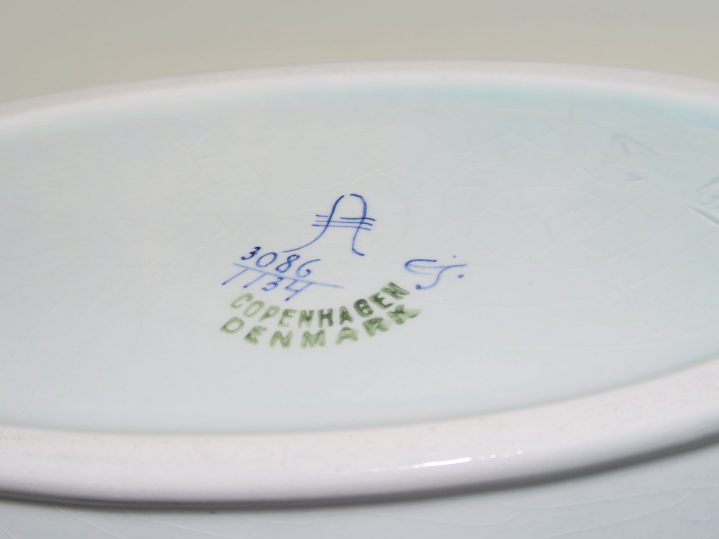 Aluminia Royal Copenhagen Tranquebar, rare oblong jardiniere for flowers.