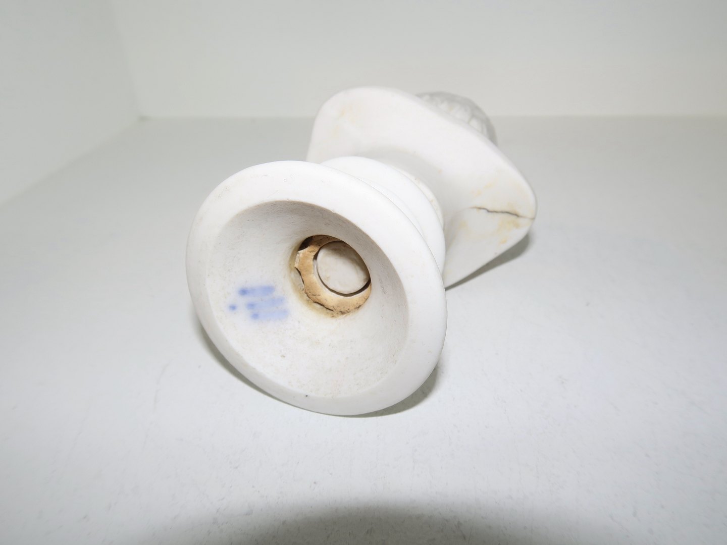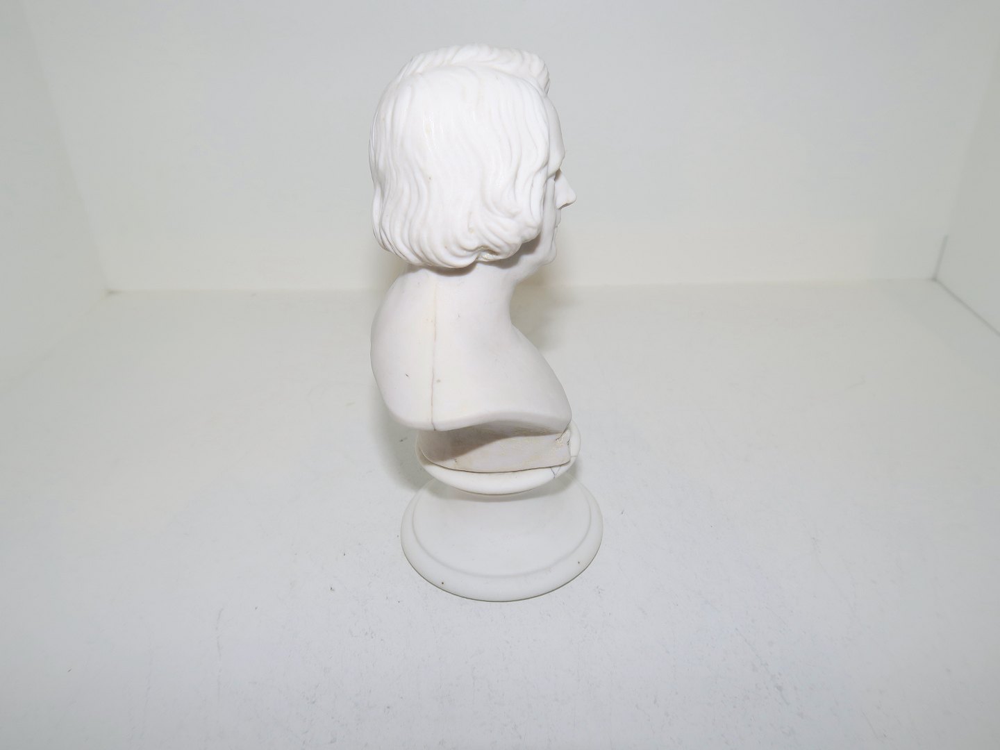 There is a hairline crack (see last picture) and small chips between bust and socket (see second last picture). Otherwise perfect condition with no chips, cracks or repairs.