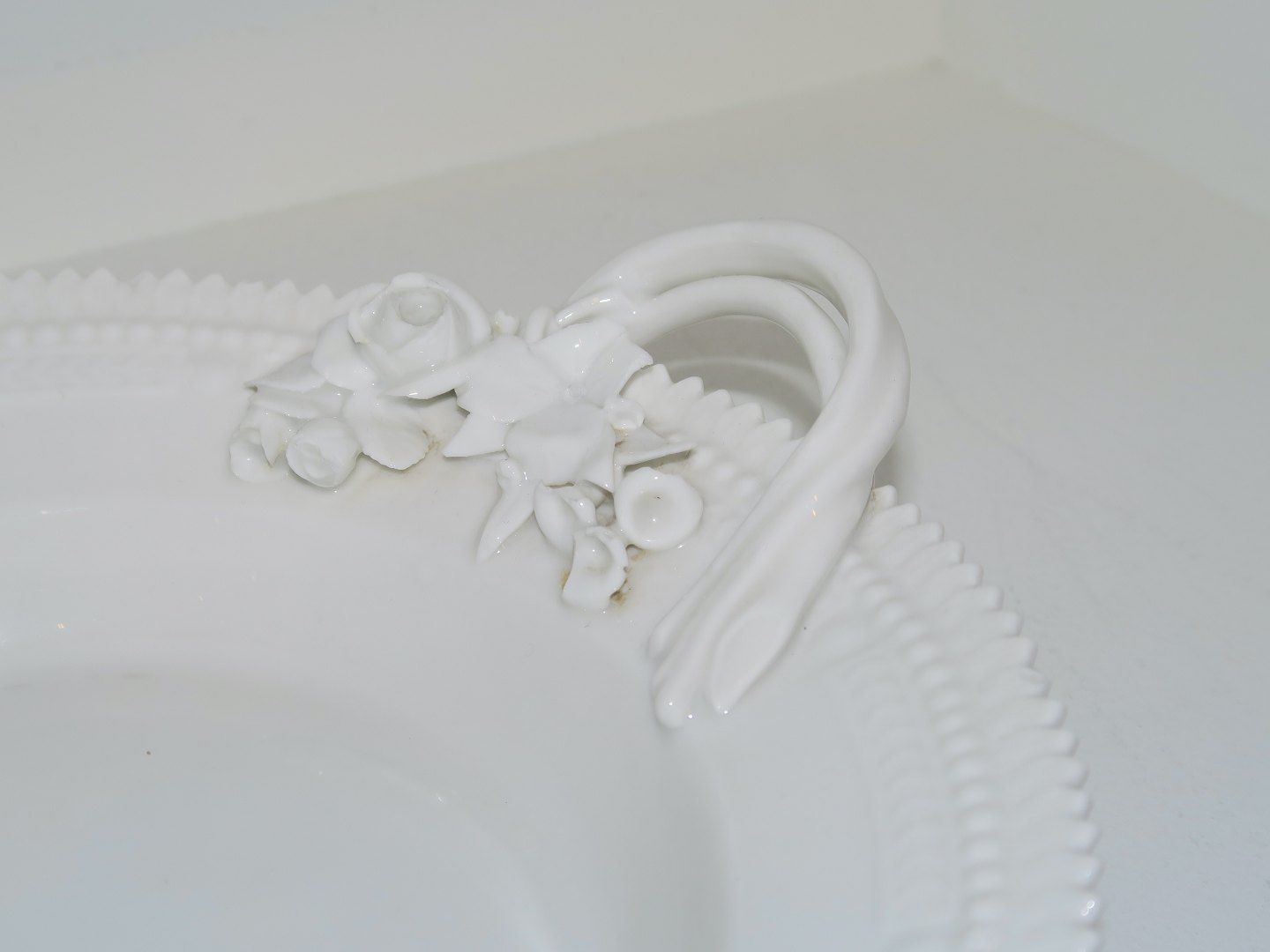Royal Copenhagen White Flora Danica, large dish with handle.