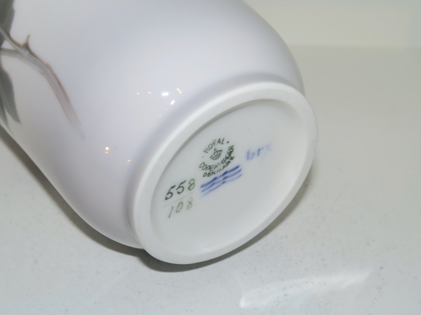 Royal Copenhagen vase der er dekoreret hele vejen rundt. Af fabriksmærket ses det, at denne er produceret i 1937. Dekorationsnummer 558/108. 2. sortering. Højde 17,0 cm. Perfekt stand uden fejl.