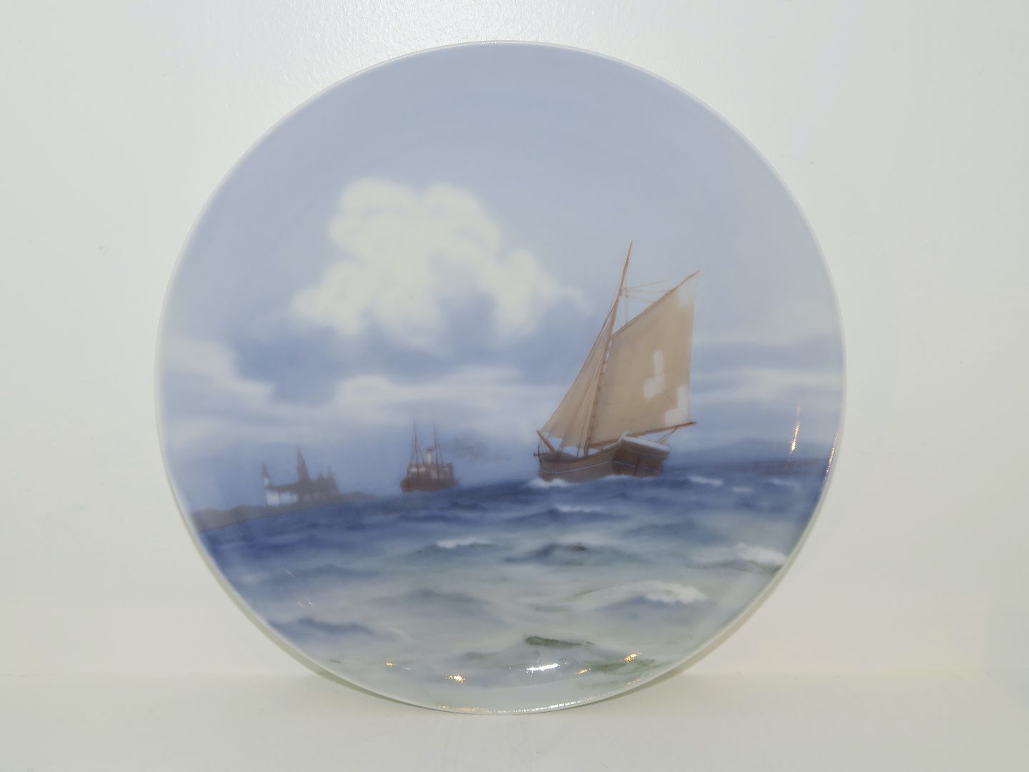 Bing & Grøndahl platte dekoreret med sejlbåde udfordringer Kronborg Slot.