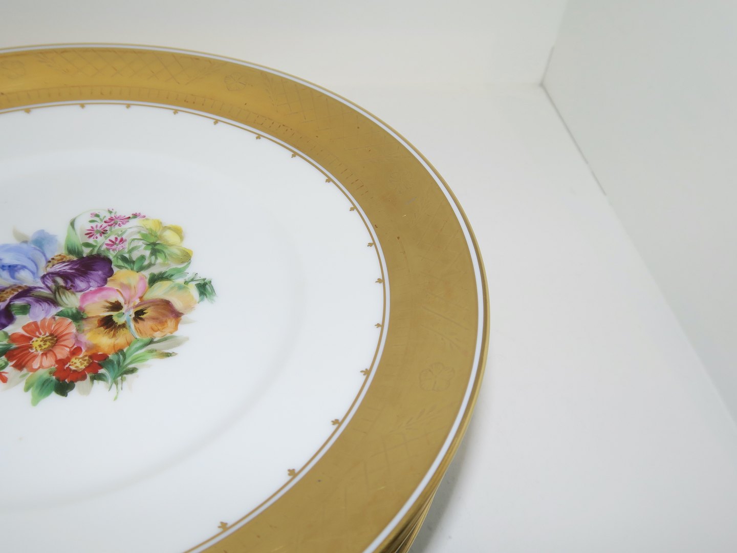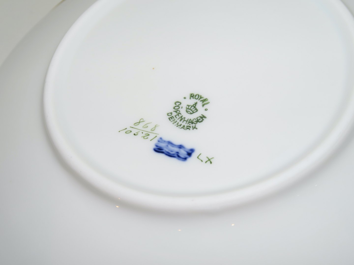 Royal Copenhagen Variant af Guldkurv, silde/salattallerken med blomsterdekoration og bred guldkant.