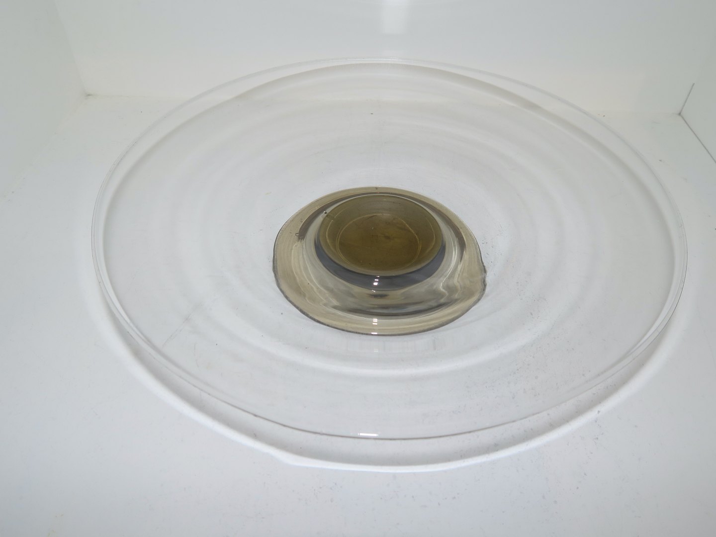 Holmegaard Viol eller Egholm fad på lav fod. Det er udført i klart samt røgfarvet glas. Begge serier er designet af Jacob Bang. Diameter 23,0 cm. Perfekt stand.