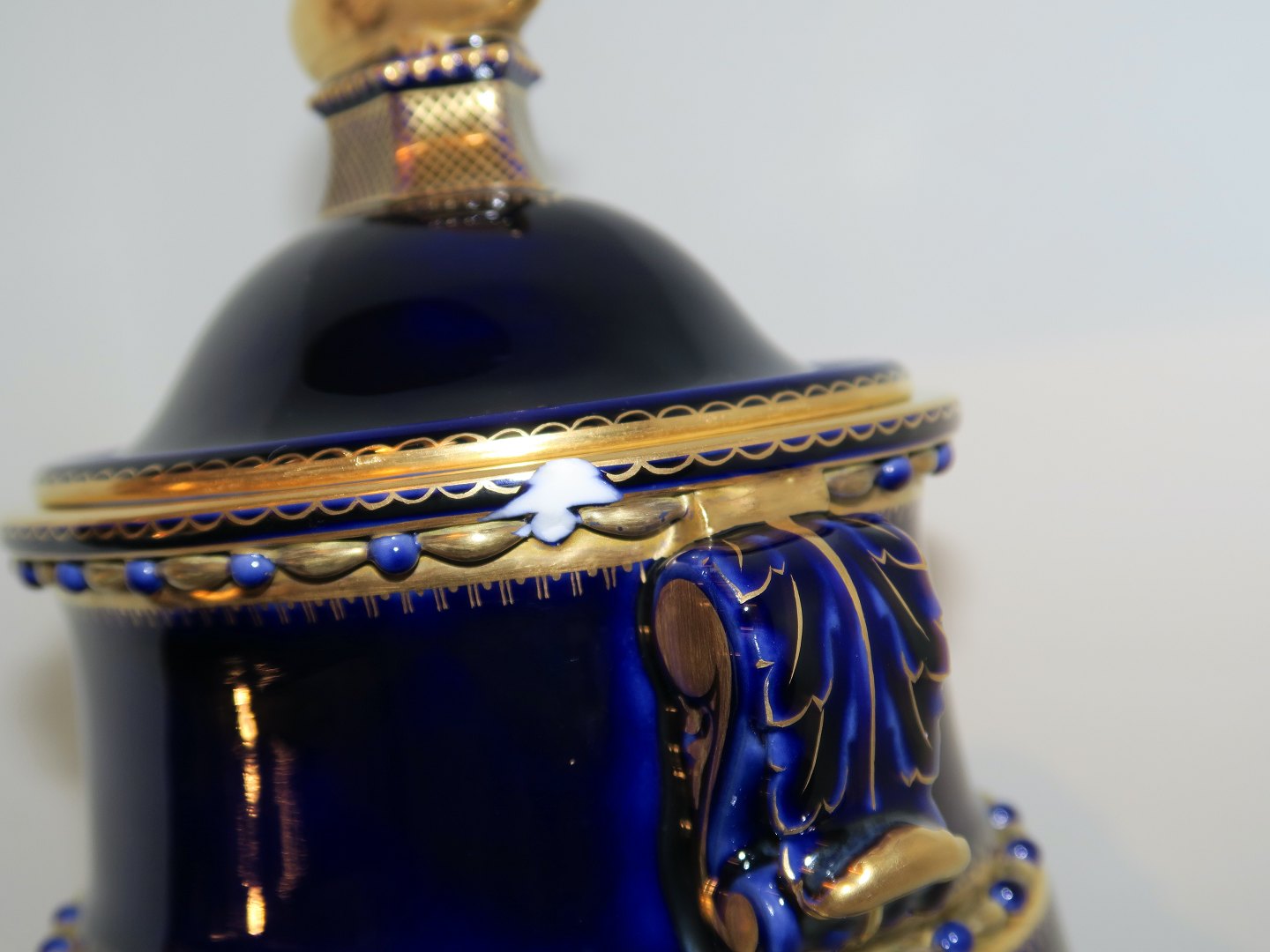 Der er et skår på låget på kanten, se foto, ellers perfekt stand uden fejl.