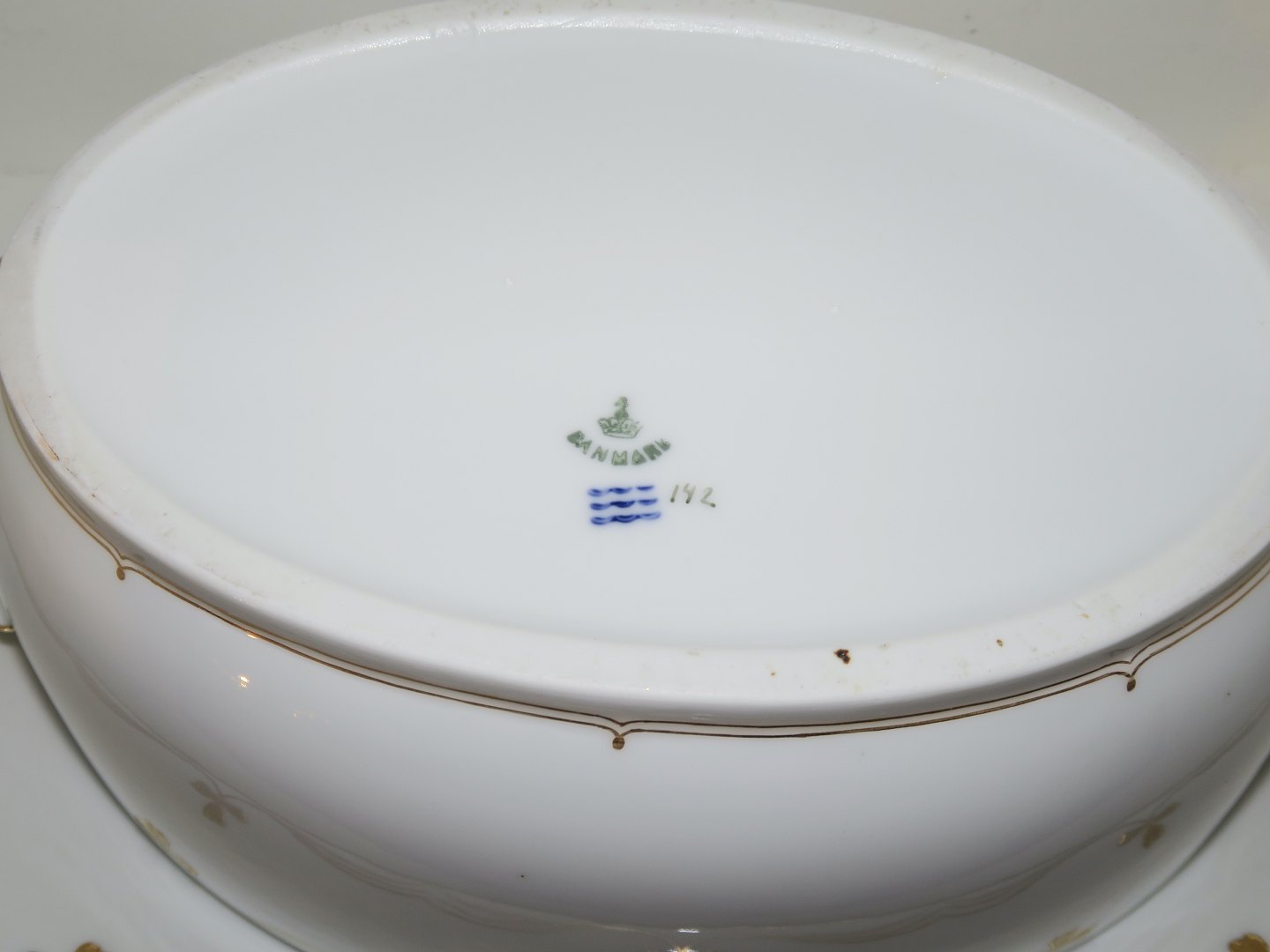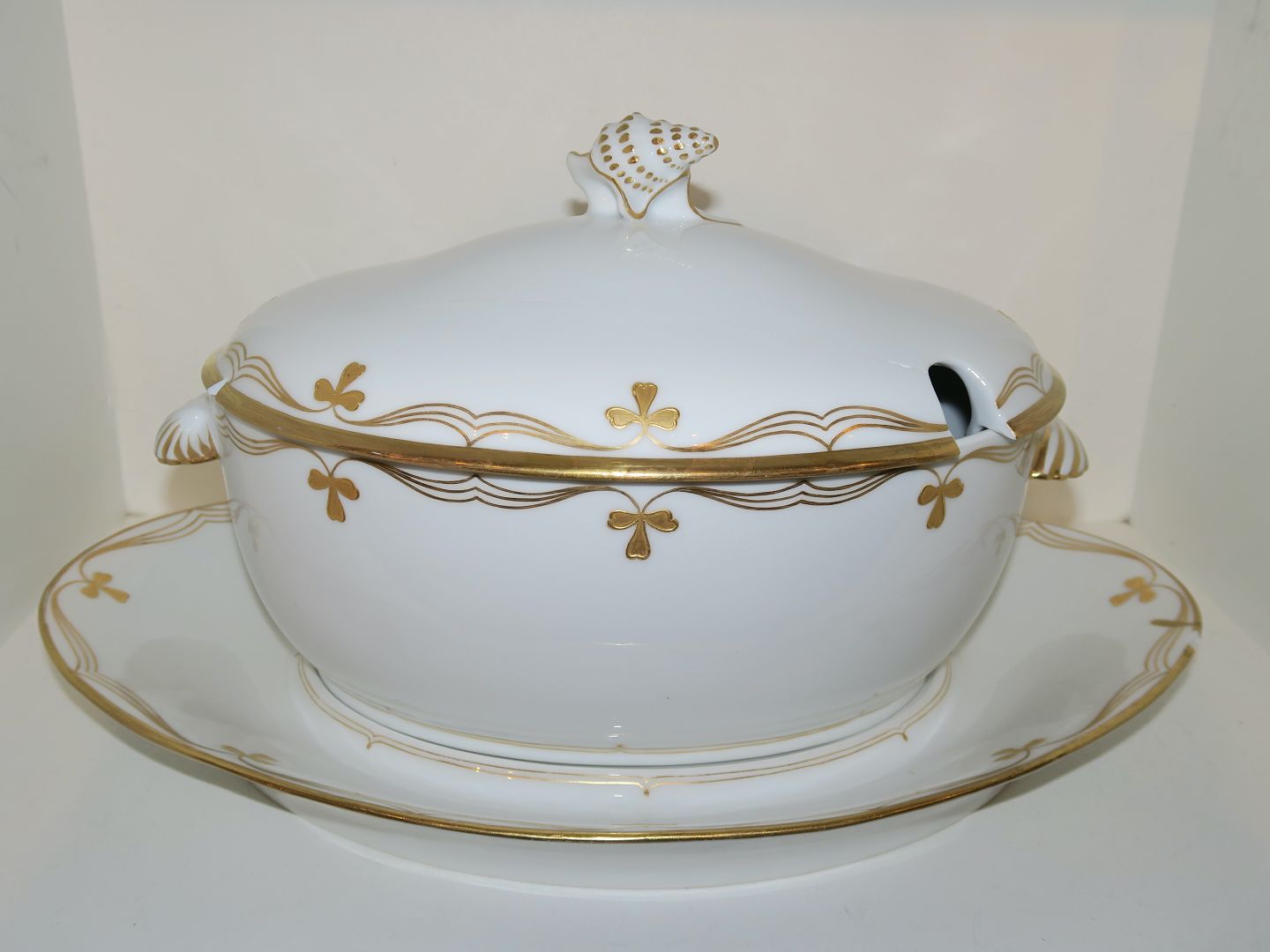 Royal Copenhagen Art Nouveau Hvidt med Guldguirlande, suppeterrin med underfad.