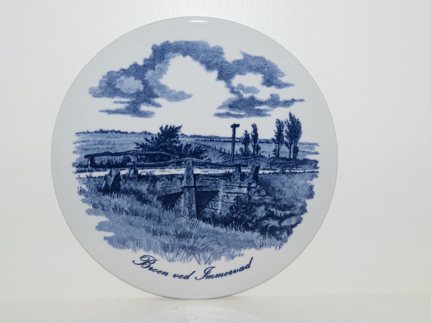 Royal Copenhagen smørbrædt/platte, Broen ved Immerhvad. Dekorationnummer 2-1403. 1. sortering. Diameter 14,5 cm. Perfekt stand uden fejl.