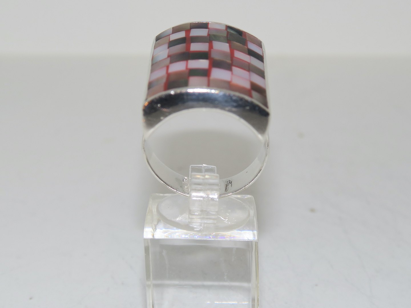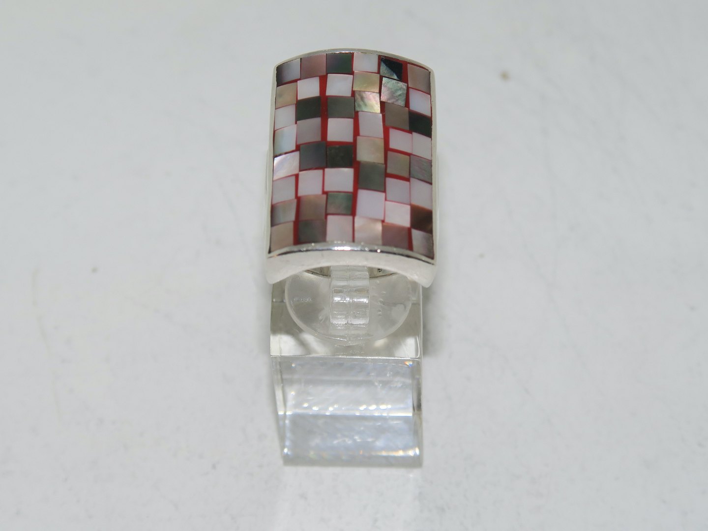 Anders Møller / Scrouples A/S sterlingsølv, stor moderne ring ternet mønster i perlemor.