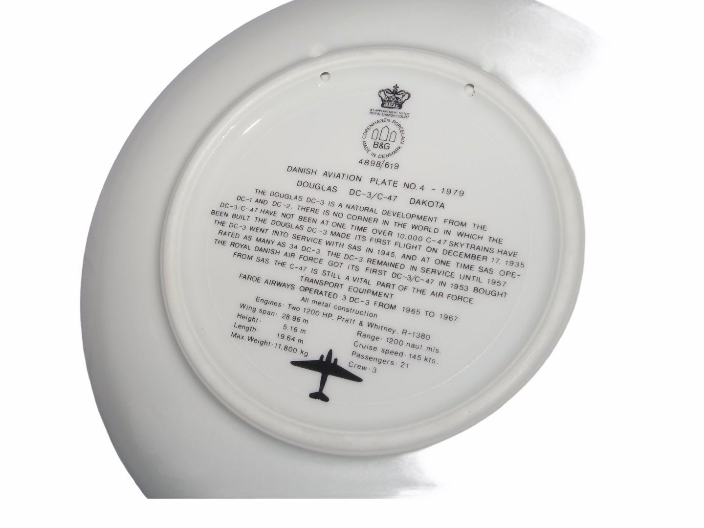 Bing & Grøndahl flyplatte Nummer 4, Dakota DC-3/C-47.