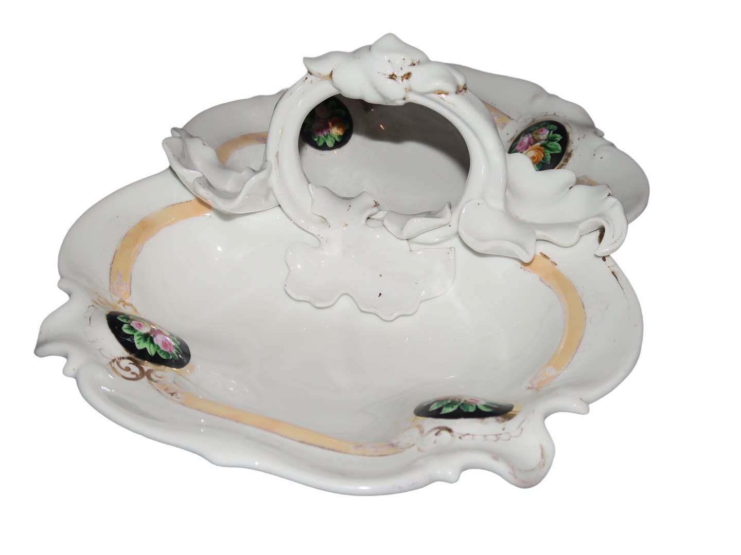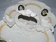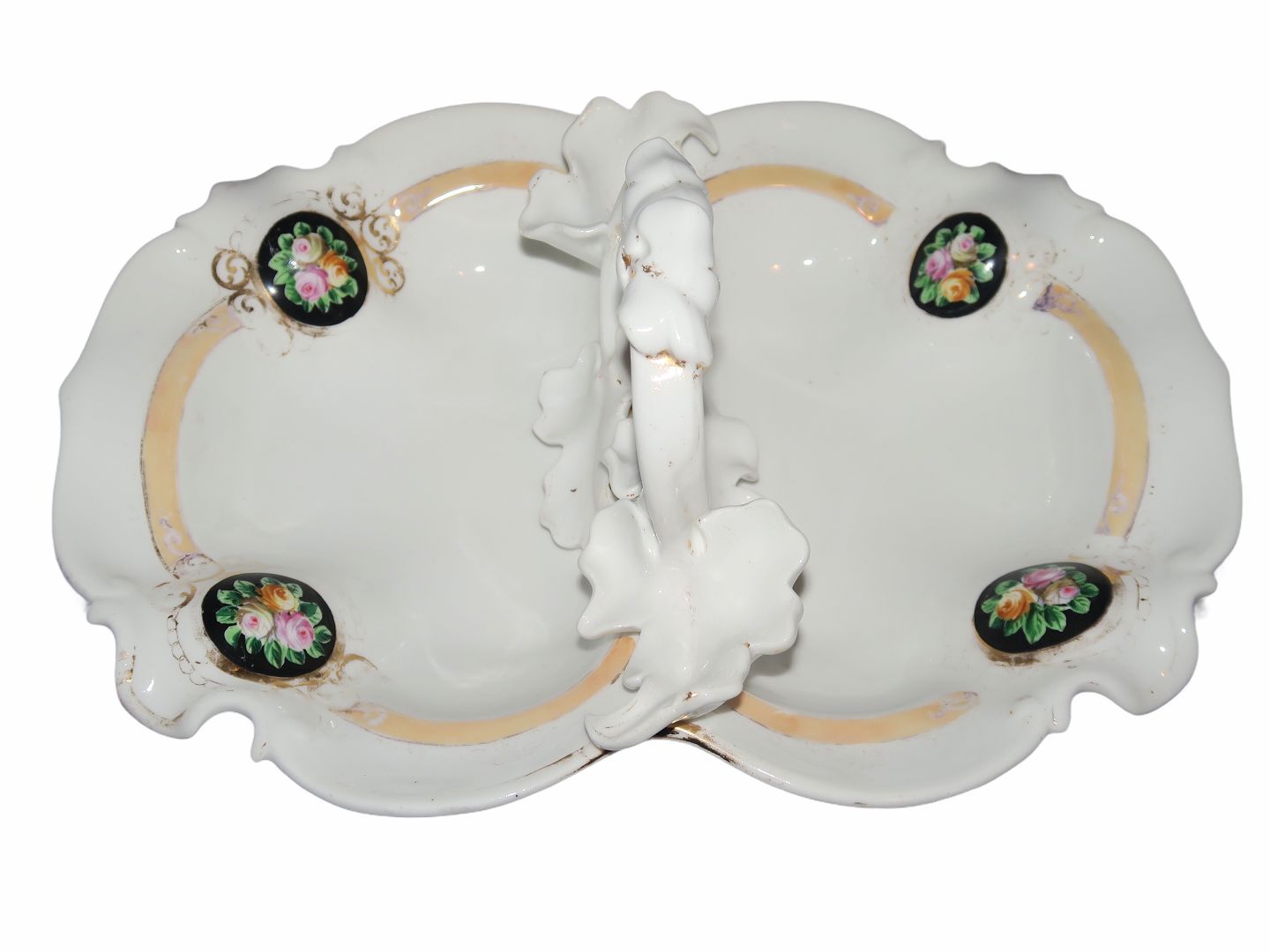 Bing & Grøndahl cabaretfad med blomster på sort baggrund.