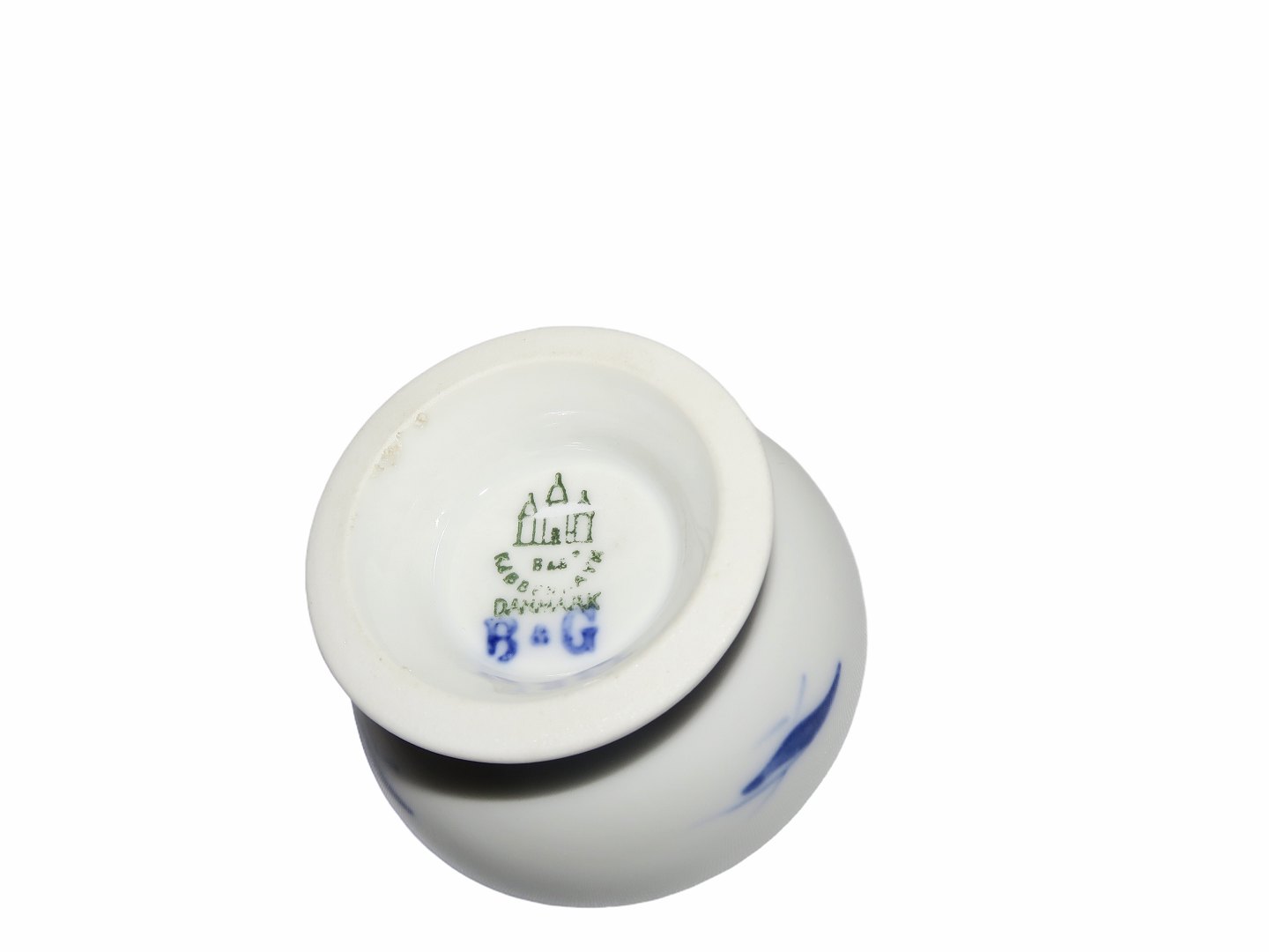 Bing & Grondahl The Jubilee Service decorated with blue carnations, salt jar.