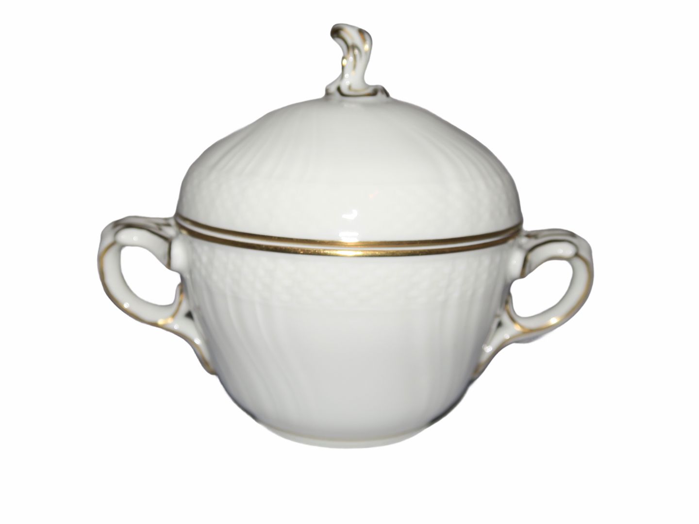 Royal Copenhagen Sirius - Hvid Svejfet med guldkant, sukkerskål.