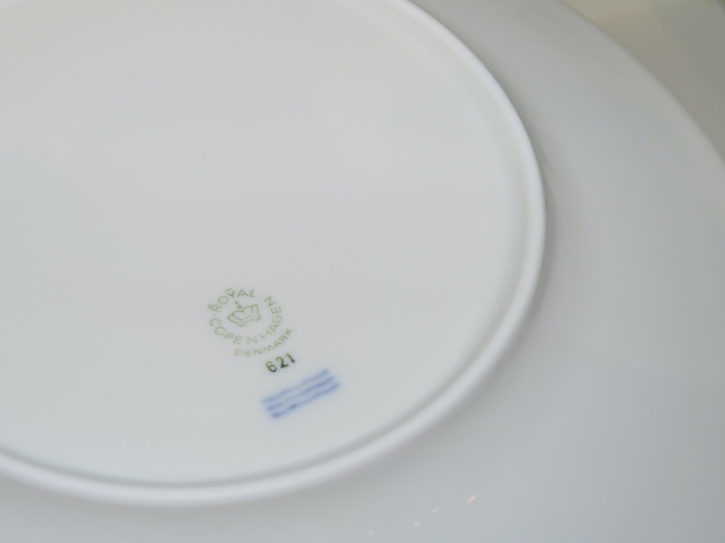Royal Copenhagen White Fan, luncheon plate. Designed by Arnold Krog in 1909. Decoration number 11520. Factory first. Diameter 22.0 cm. Perfect condition with no chips, cracks or repairs.