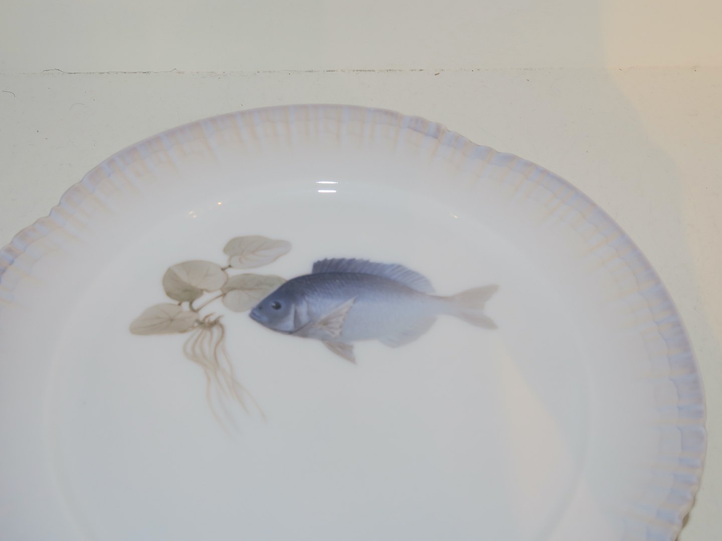 Royal Copenhagen Art Nouveau fisketallerken. Af fabriksmærket ses det, at denne er produceret mellem 1898 og 1923. Dekorationsnummer 1/9520. 2. sortering. Diameter 21,5 cm. Perfekt stand uden fejl.