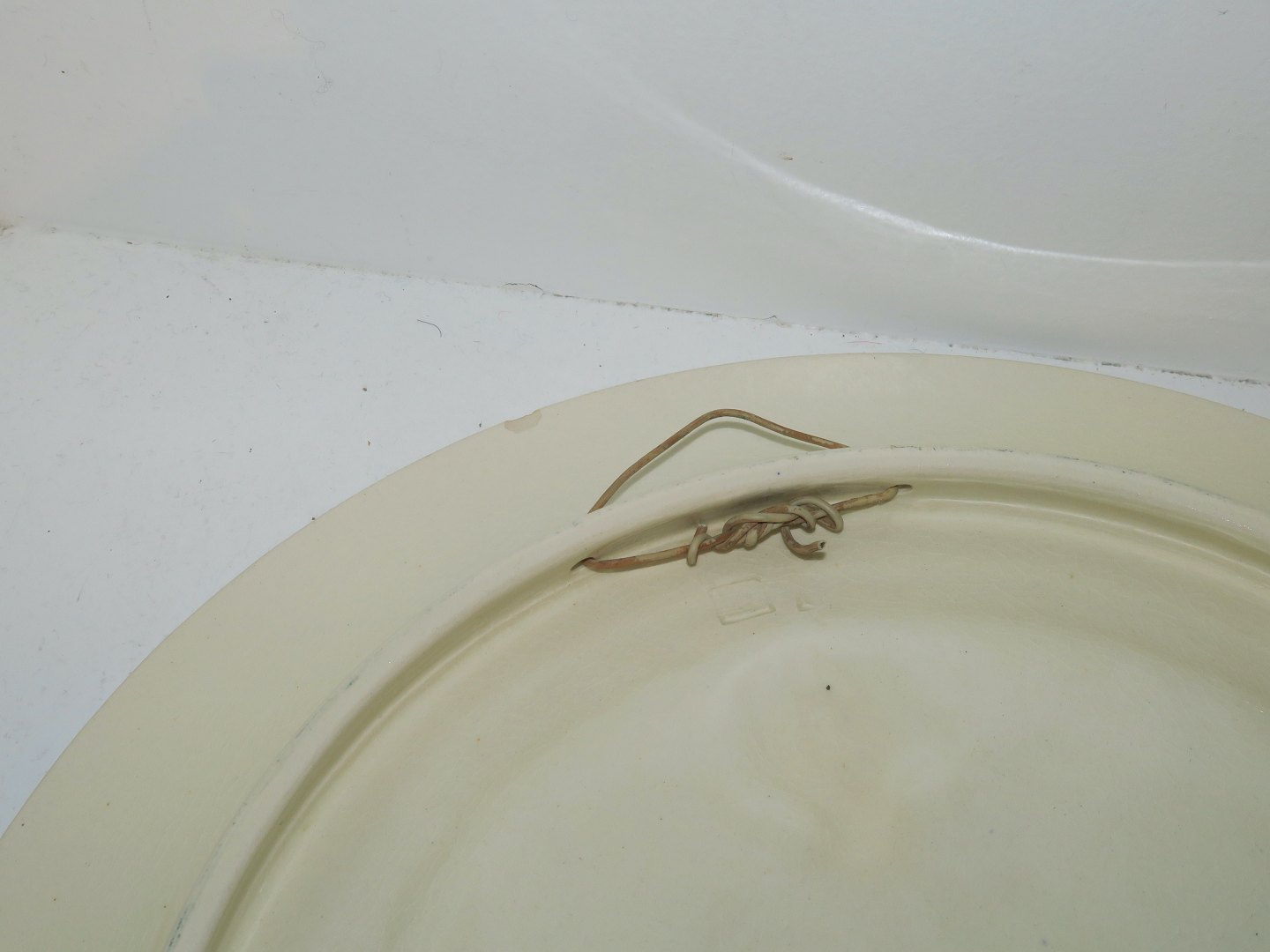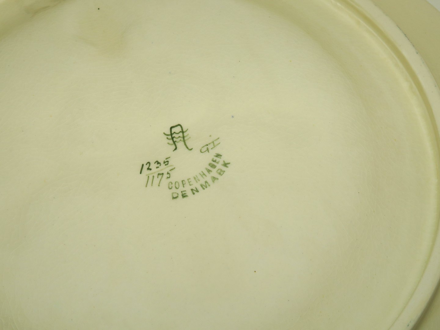 Der er tre små skår, som kun ses på bagsiden af platten - se fotos. Ellers perfekt stand uden fejl.