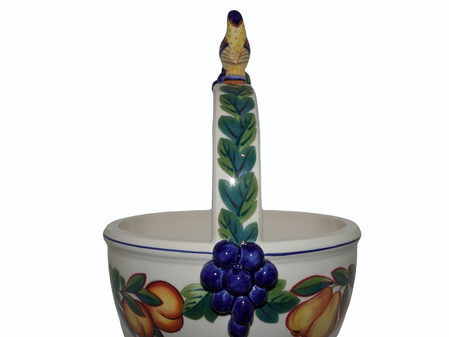 Royal Copenhagen Golden Summer, fruit bowl with handle and bird figurine.