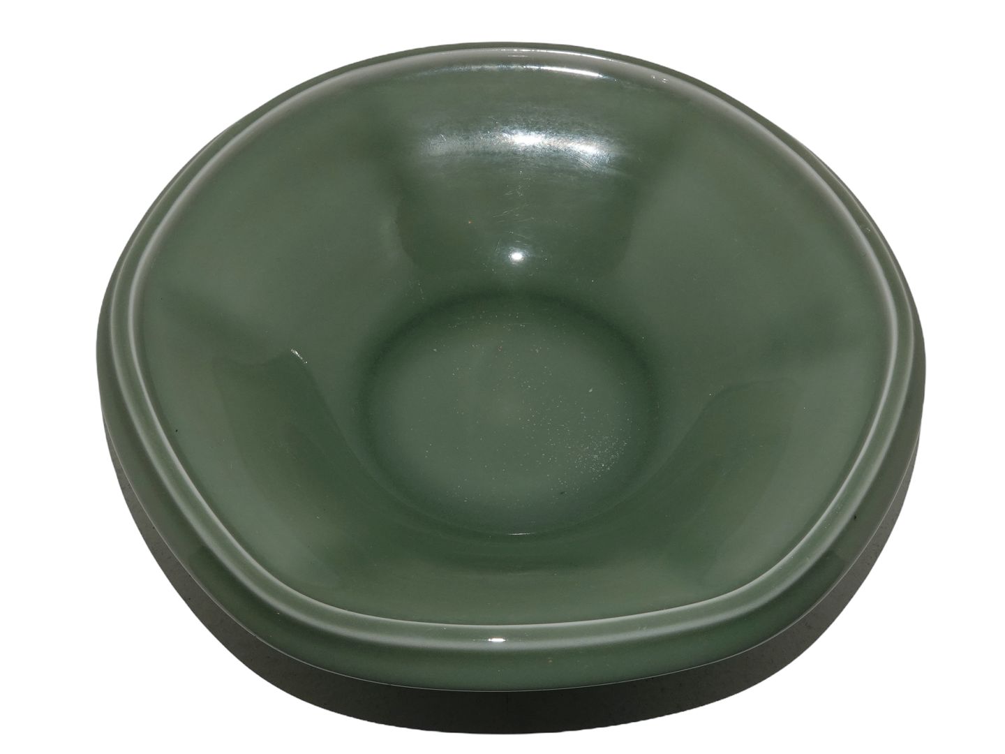 Royal Copenhagen keramik, unika rundt fad med grøn celadonglasur.