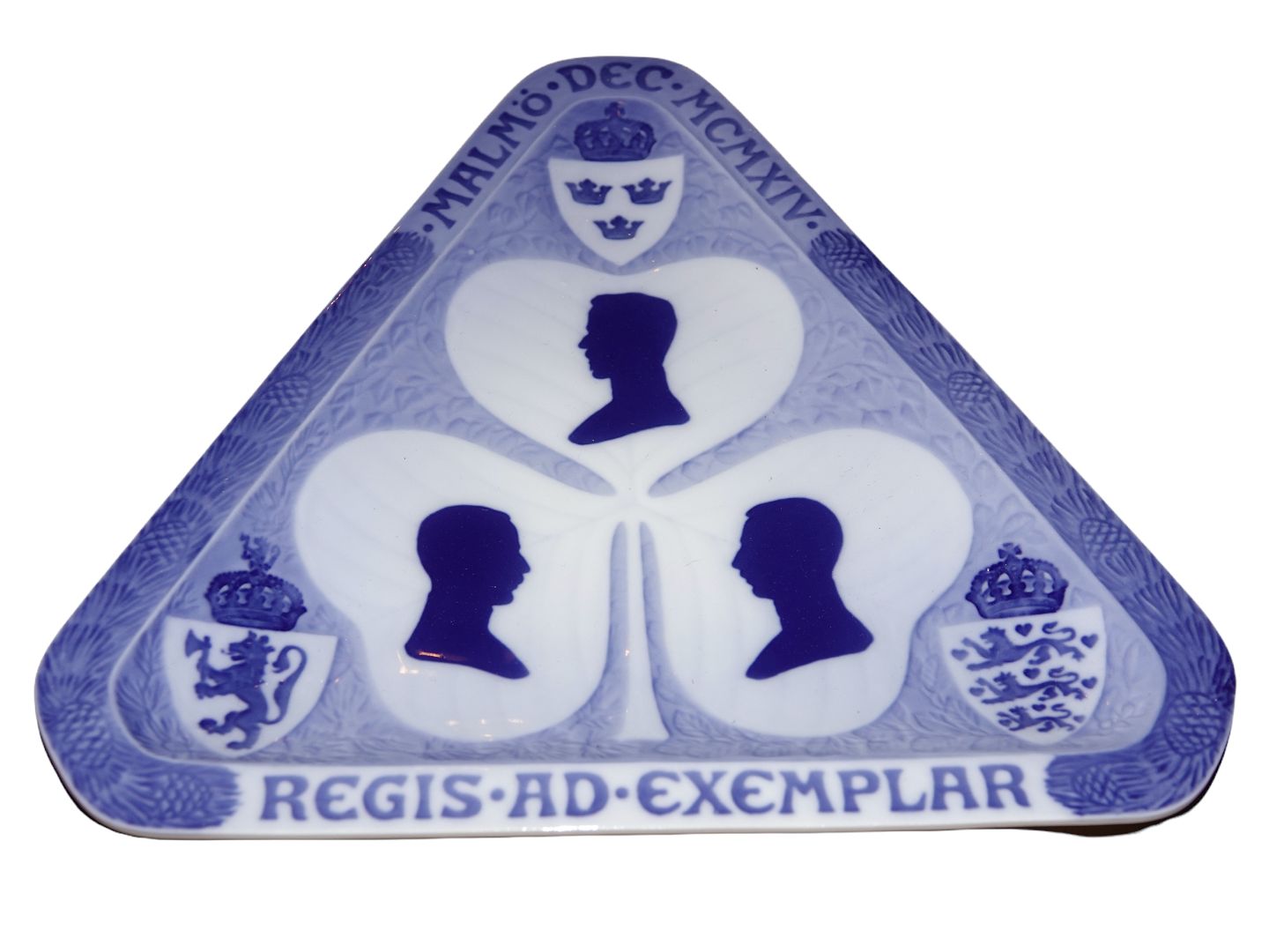 Royal Copenhagen Commemorative plate from 1914, Three Kings of Scandinavia, King Gustav V, Haakon VII and Christian X.