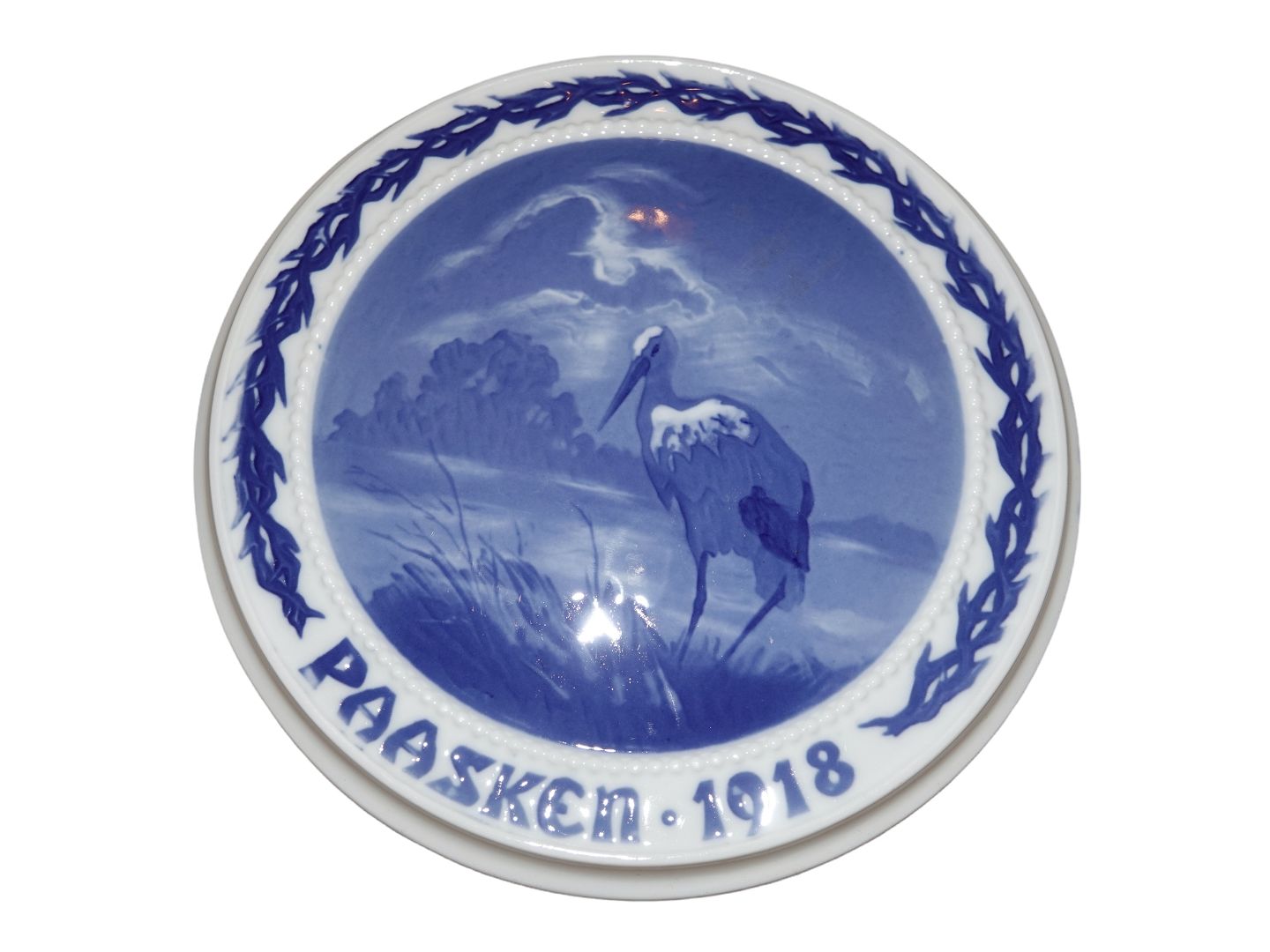 Bing & Grøndahl Påskeplatte fra 1918 med stork.