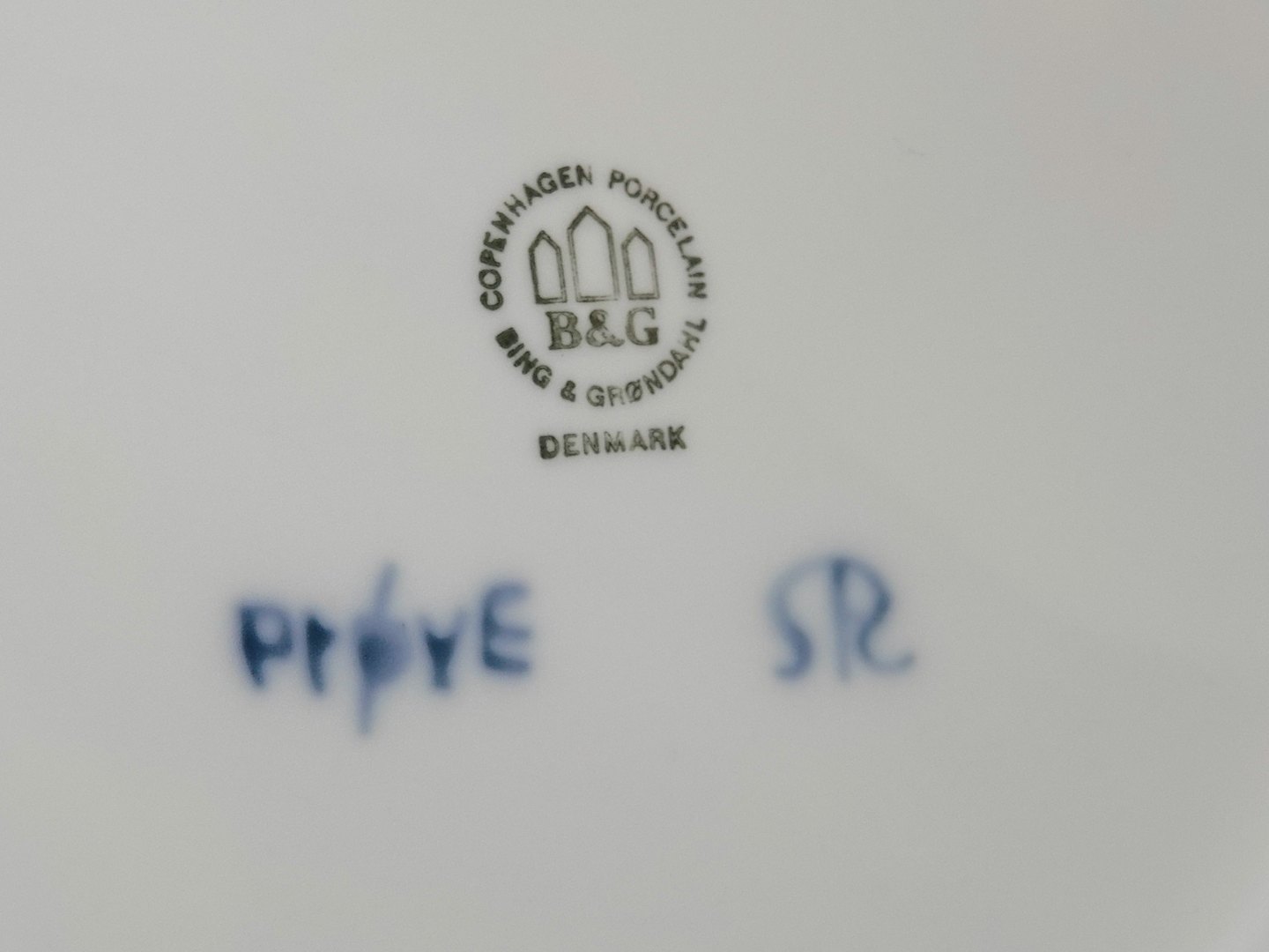 Bing & Grøndahl prøve middagstallerken på samme form som "Hvid Koppel" stellet. Kunstneren er Susanne Allpass (SA). 1. sortering. Diameter 24,6 cm. Perfekt stand uden fejl.