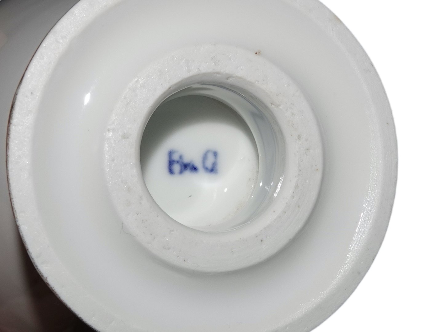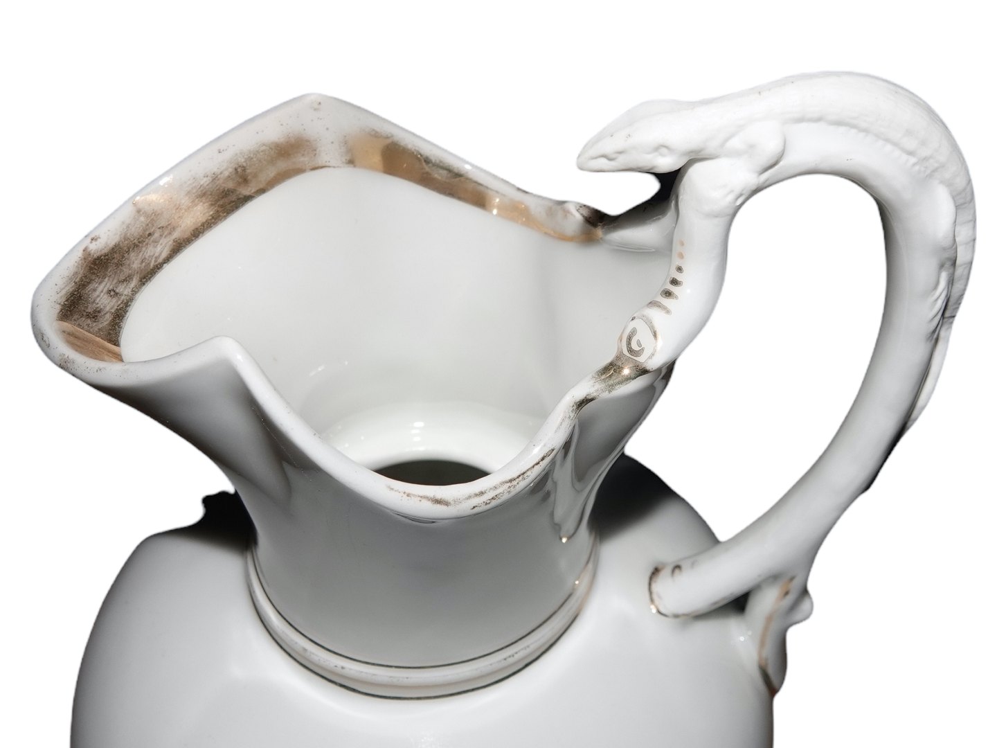Bing & Grøndahl chokoladekande med salamander på håndtaget. Låget mangler. Udfra fabriksmærket ses det at denne er produceret mellem 1853 og 1895. Højde 27,5 cm. 1. sortering. Der er slid på guldet ellers perfekt stand.