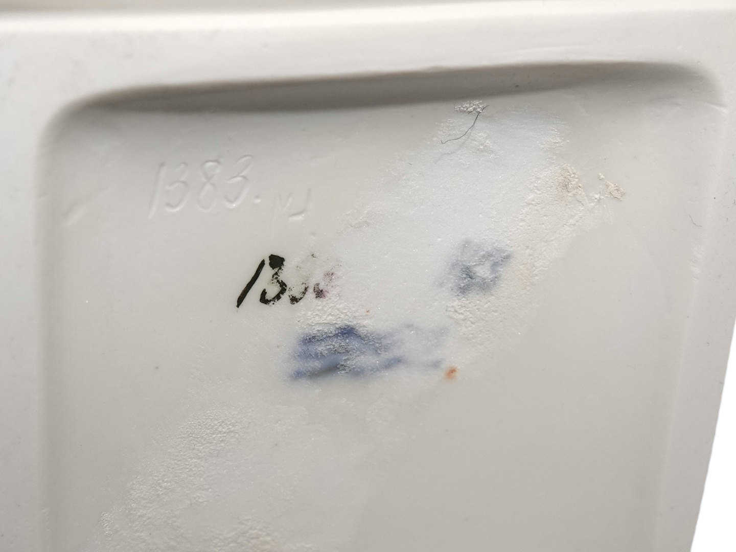 Factory first but has a few born with glaze faults at the back coat of the man, please see second last picture.