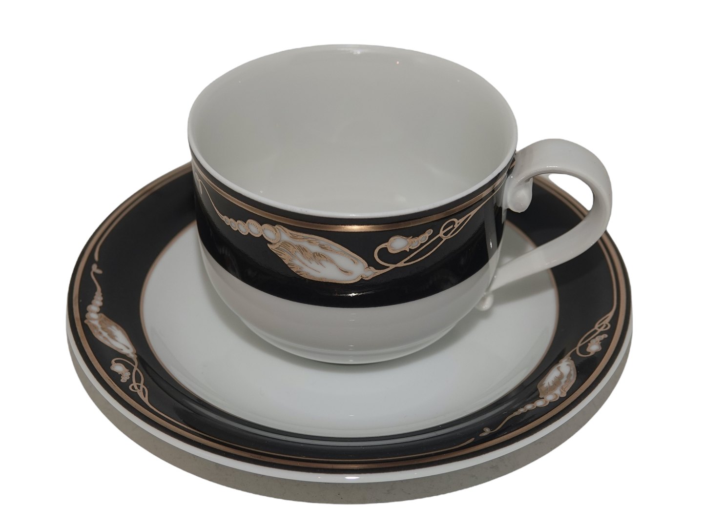 Royal Copenhagen Sort Magnolia, kaffekop med tilhørende underkop.