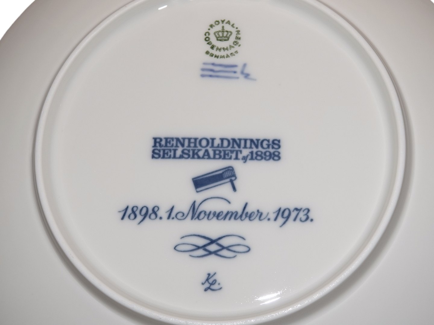 Royal Copenhagen Mindeplatte fra 1973, Renholdingsselskabet 1. November 1898-1973. Med motiv af Rundetårn.