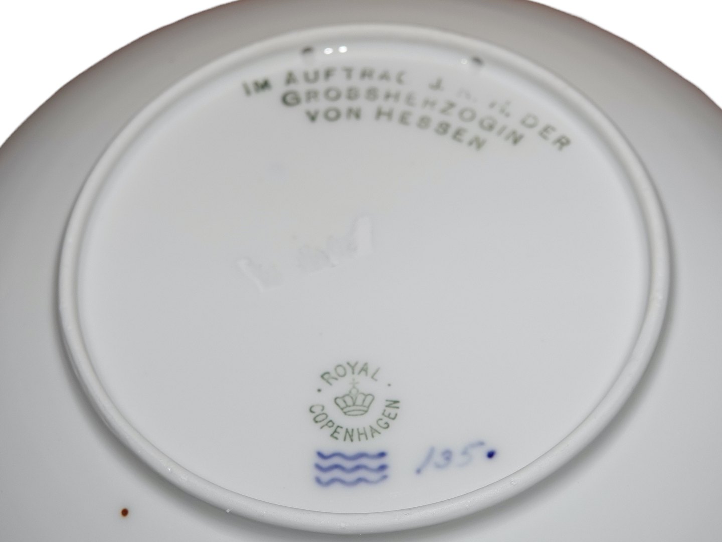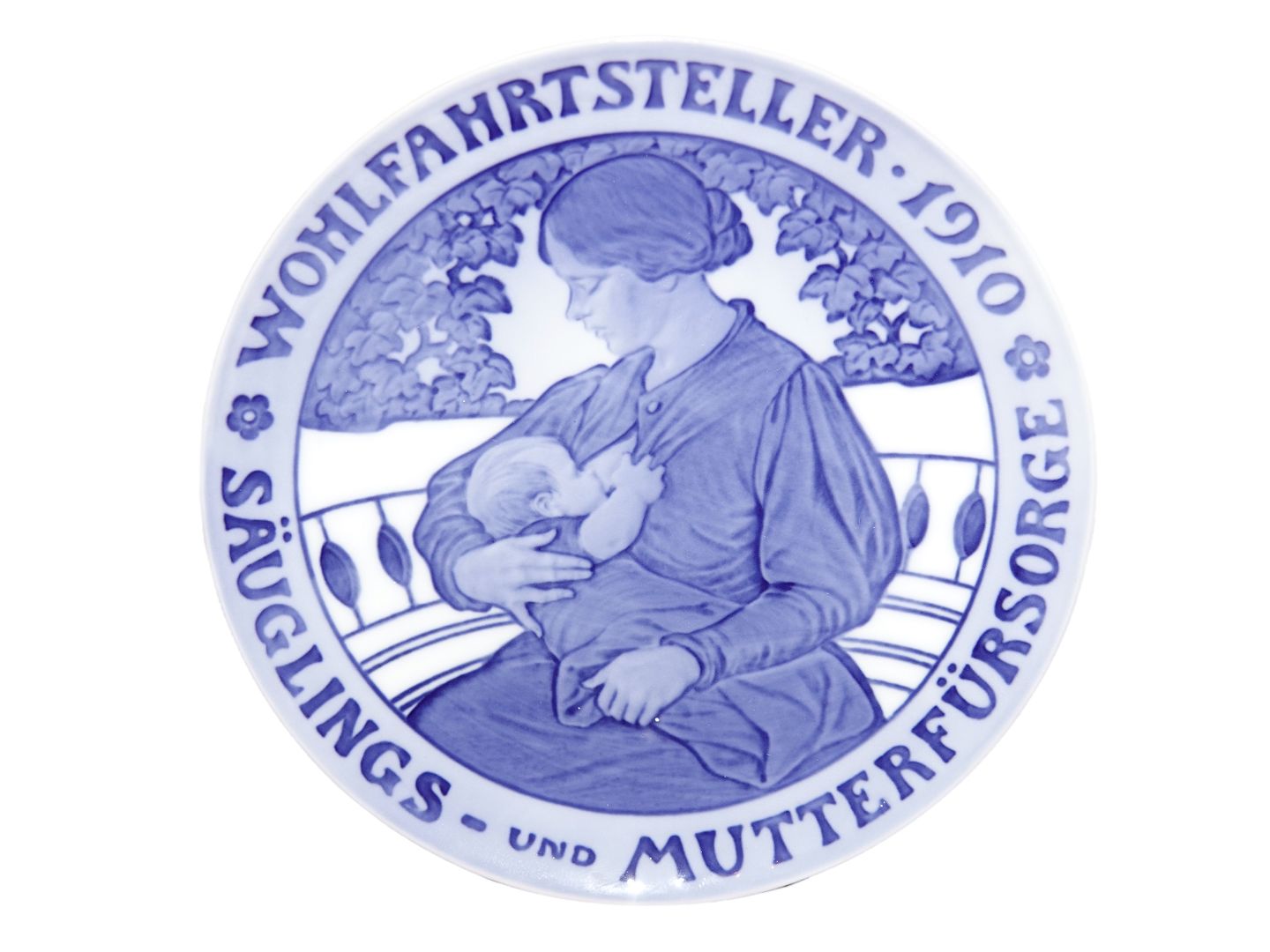Royal Copenhagen Mindeplatte fra 1910, tysk barneplejeplatte. Udført på foranledning af Storhertuginden af Hessen. "WOHLFARSTTELLER 1910 SAUGLINGS UND MUTTERFURSOGE".