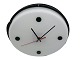 Holmegaard Rally Clock for hanging on wall in white opal glass with green stripes and bottoms.
