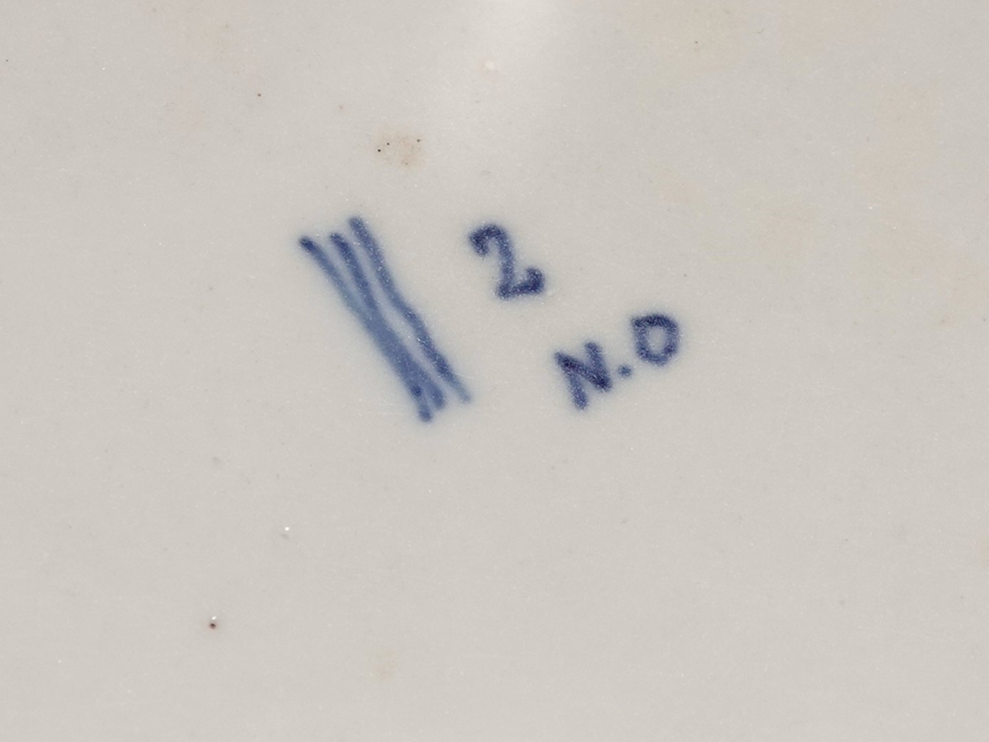 There is a few dark spots in the glaze, mostly on the inside of the bowl. The glaze on the inside of the bowl has a little wear. Otherwise perfect condition with no chips, cracks or repairs.