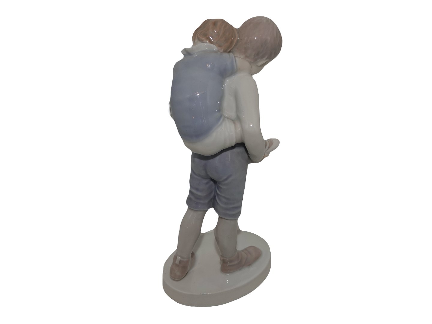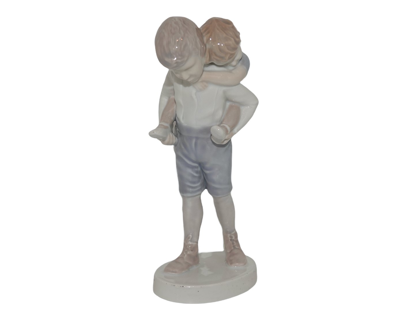 Bing & Grøndahl figur, to legende børn. Tidlig udgave i sarte lyse farver.