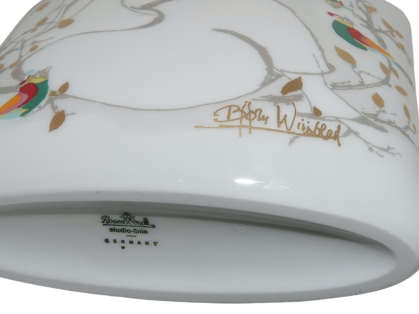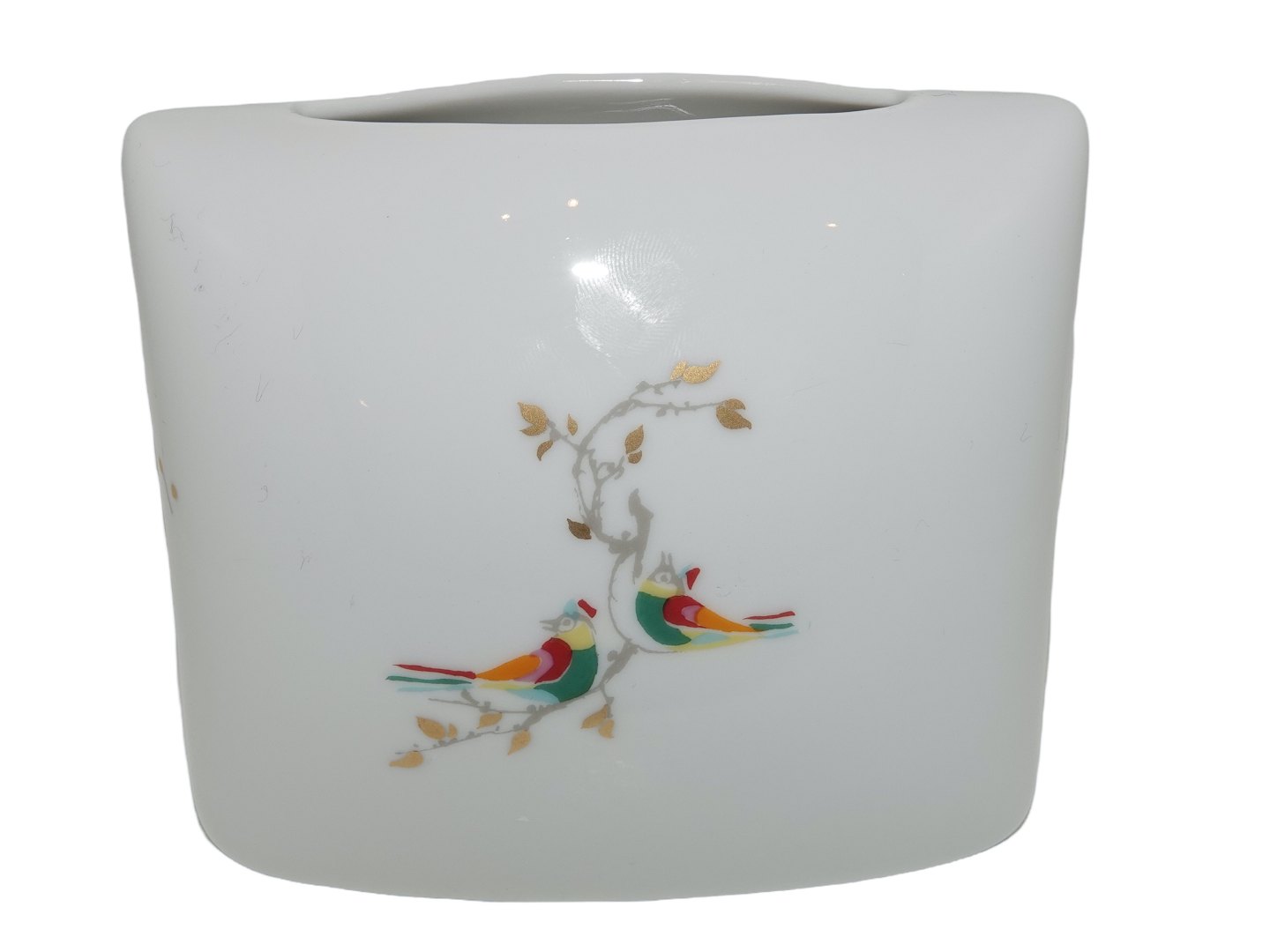 Bjørn Wiinblad, lille oval vase med dame og fugle.
