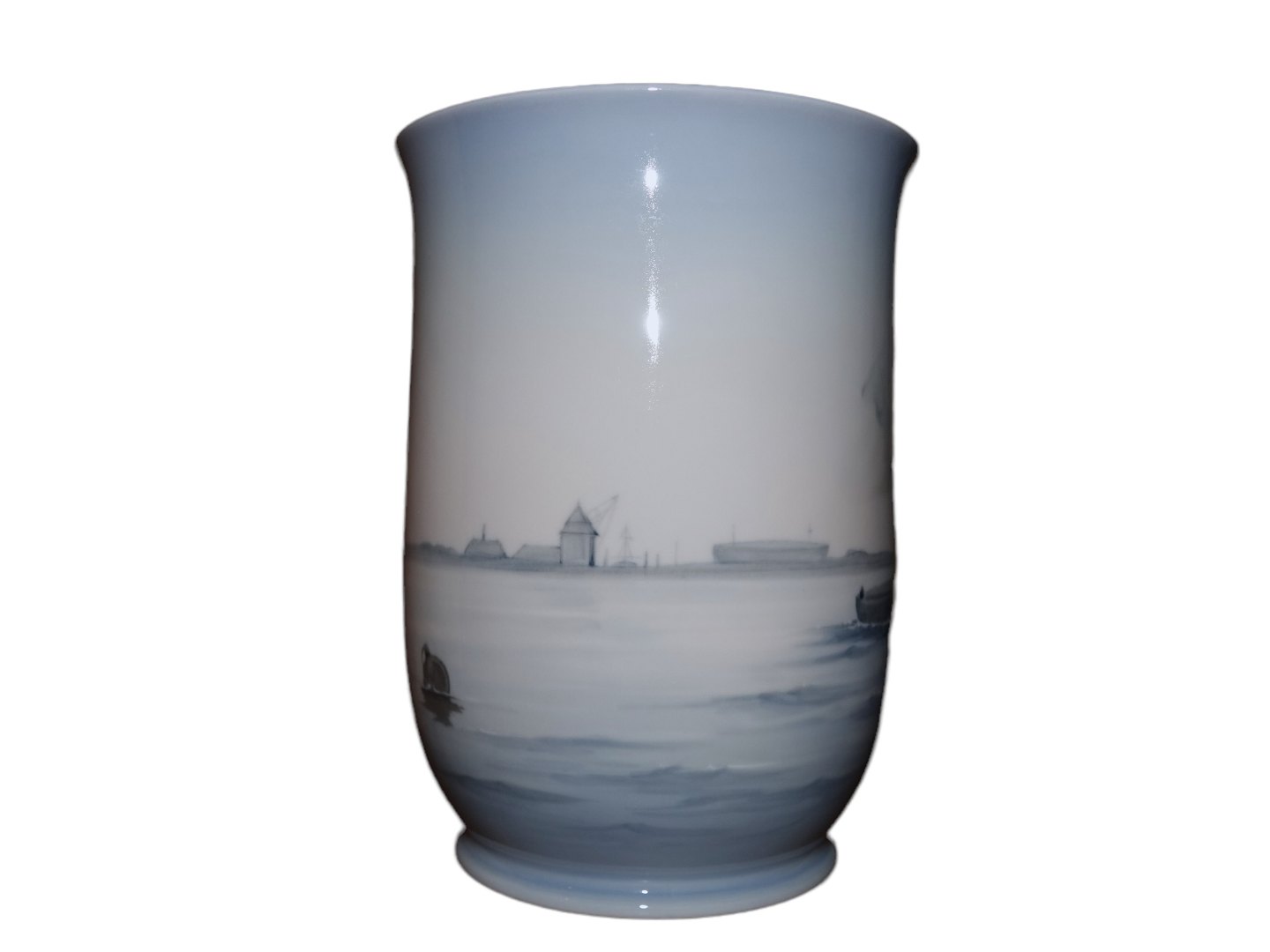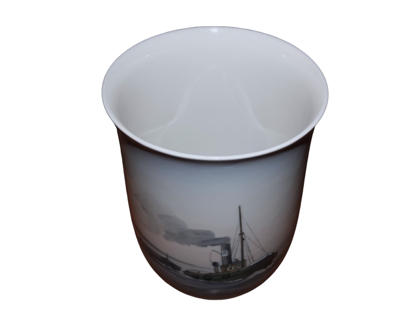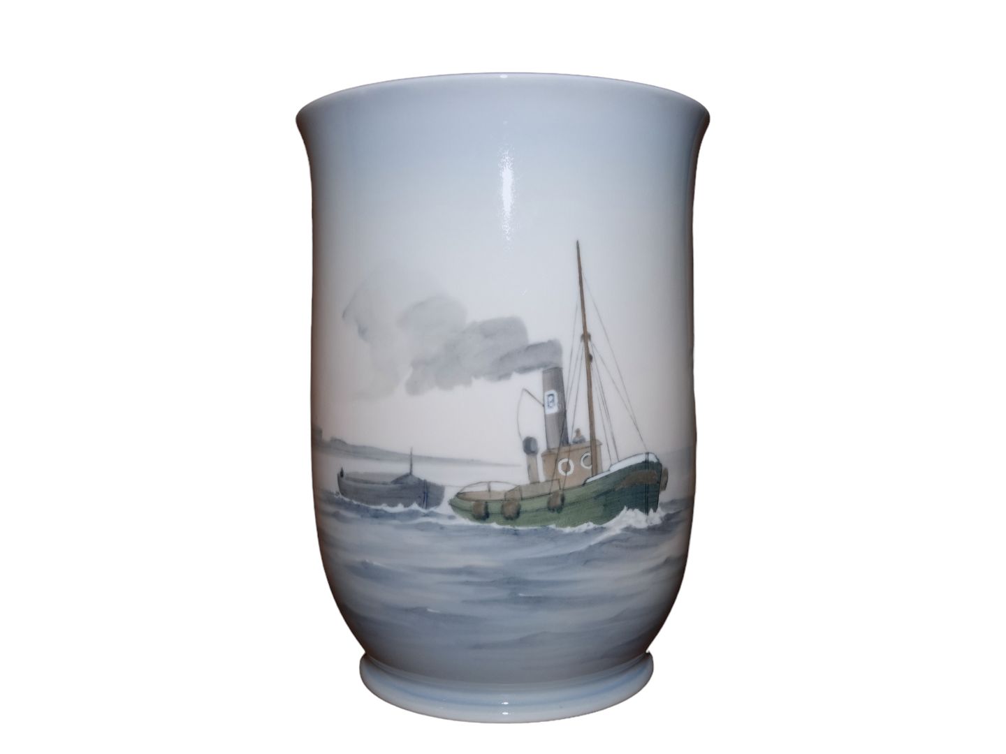 Bing & Grøndahl vase med en slæbebåd. Vasen er dekoreret hele vejen rundt.
