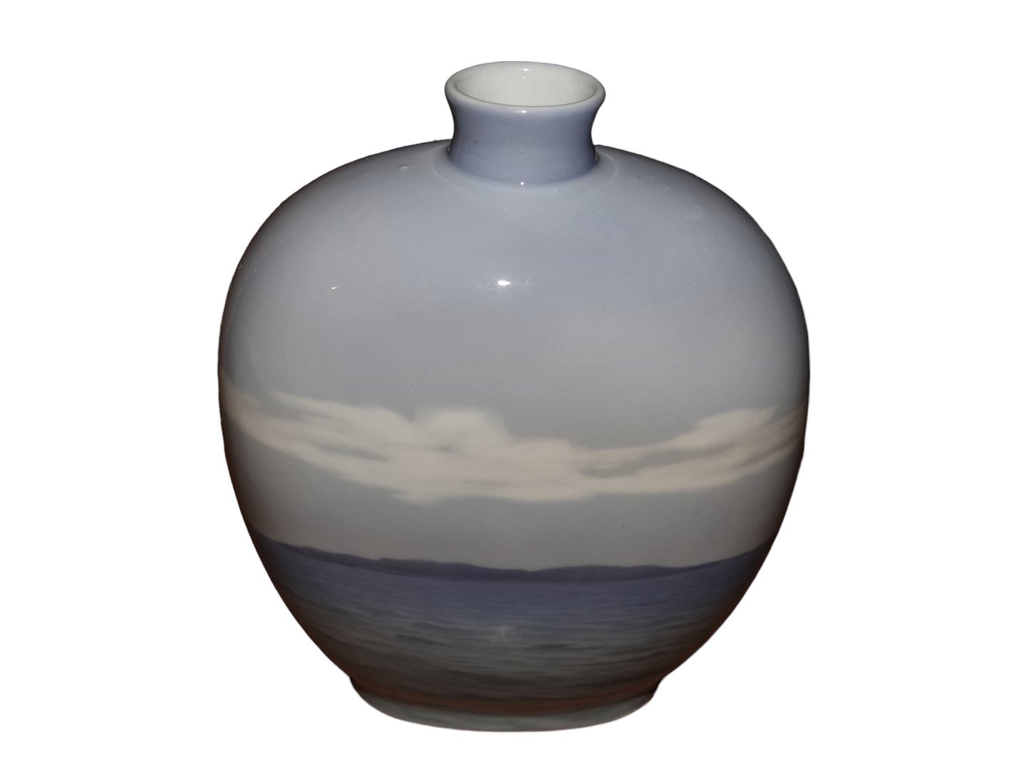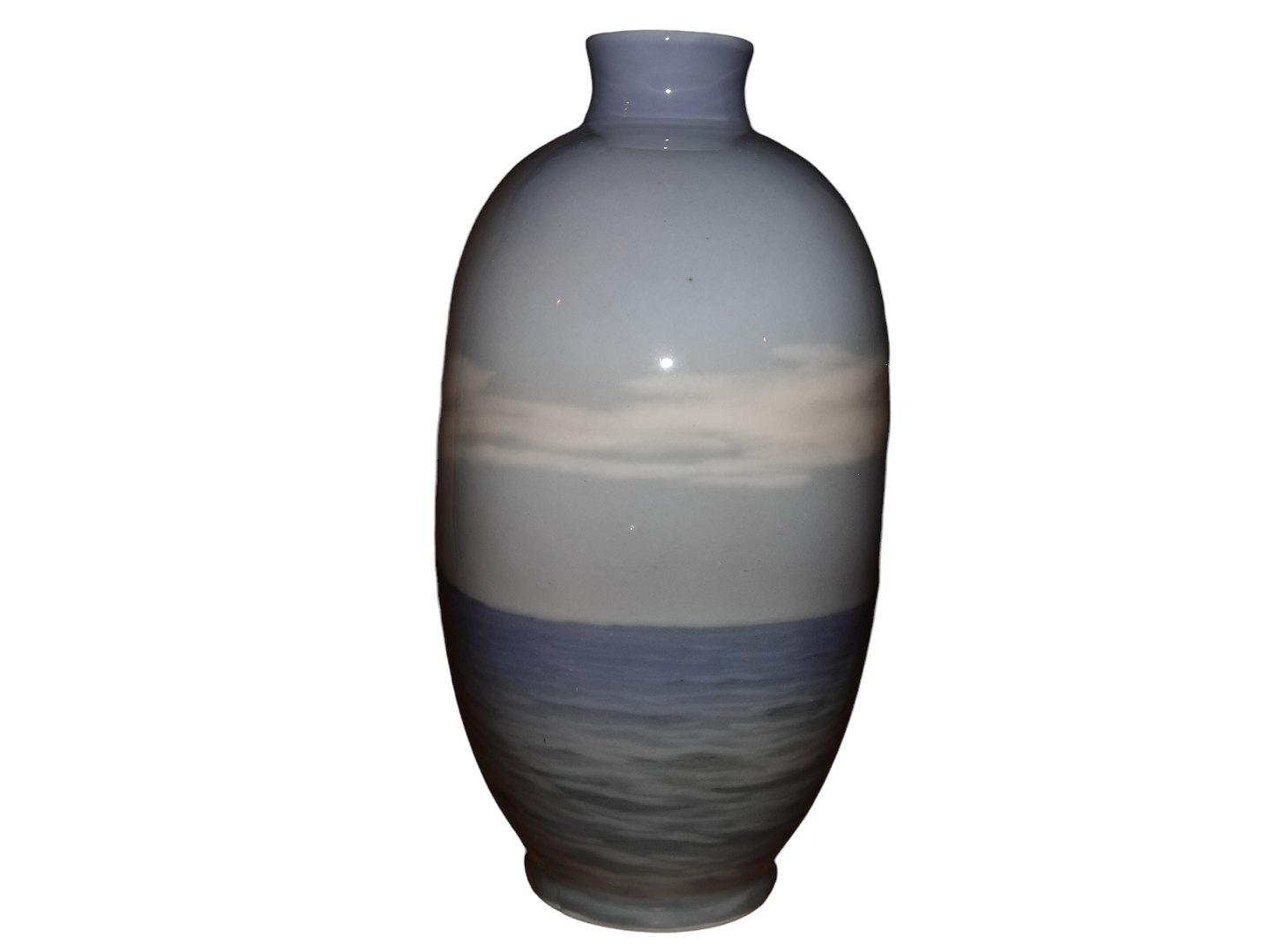 Royal Copenhagen oval vase med sejlskib. Vasen er dekoreret hele vejen rundt.
