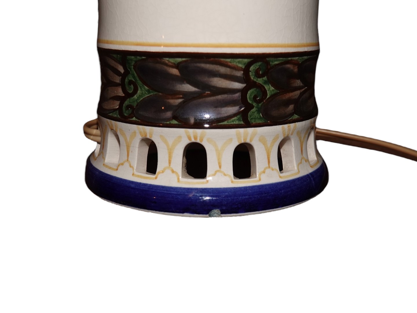 Der er tre skår ved bunden samt en revne hvert på lampen, se fotos.